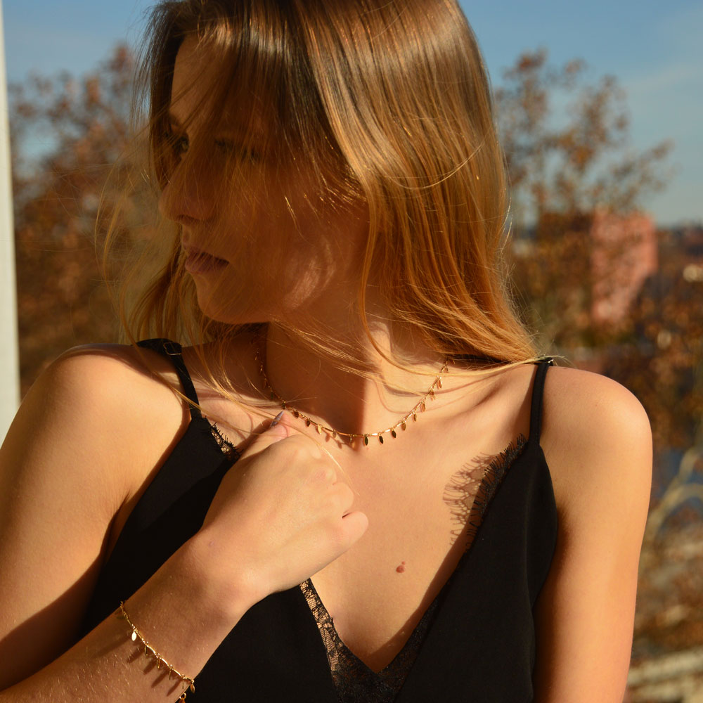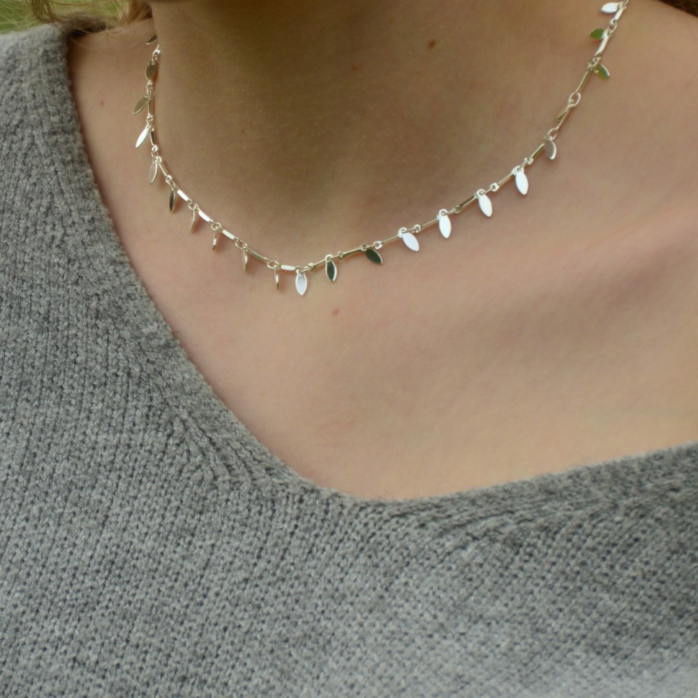 Collier Captiva, composé d'une chaîne en plaqué argent avec des petites pampilles en forme de feuilles.