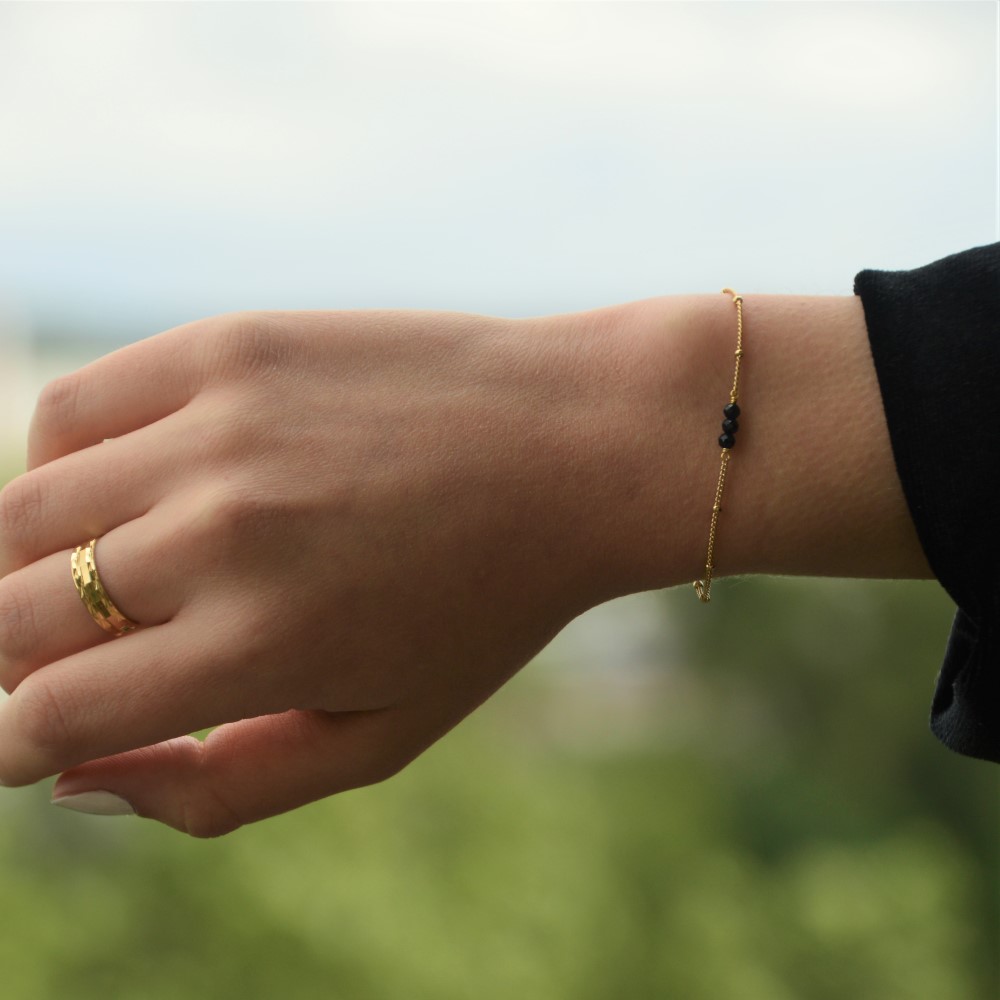 Les bijoux Adepte sont dorés à l’or fin, la dorure est garantie un an. Les bijoux Adepte ne doivent pas être mis en contact avec l’eau ou tout autre produit abrasif qui pourraient altérer la dorure ou le tissage.
