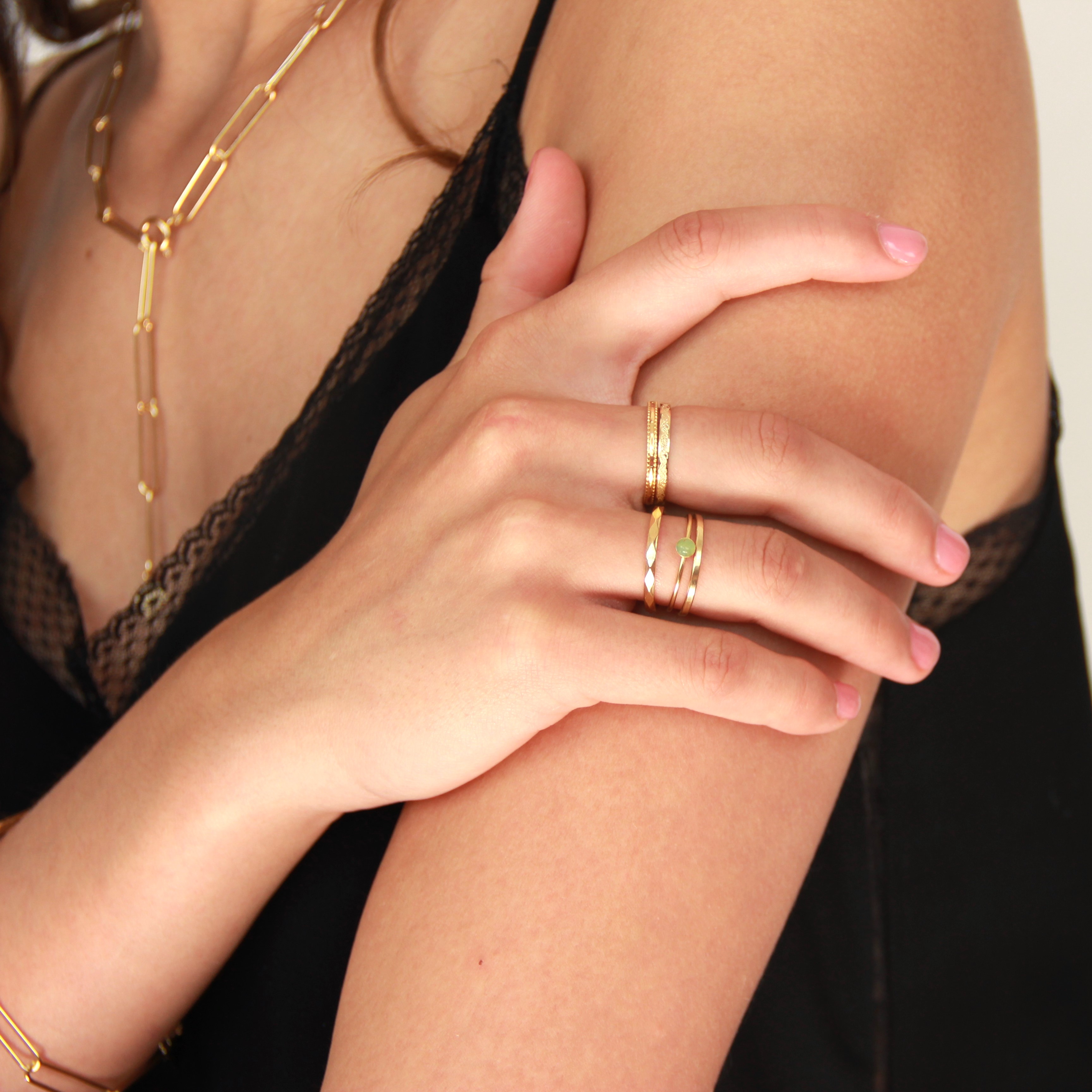 La bague Julie est ajustable et s’adapte à tous les doigts.