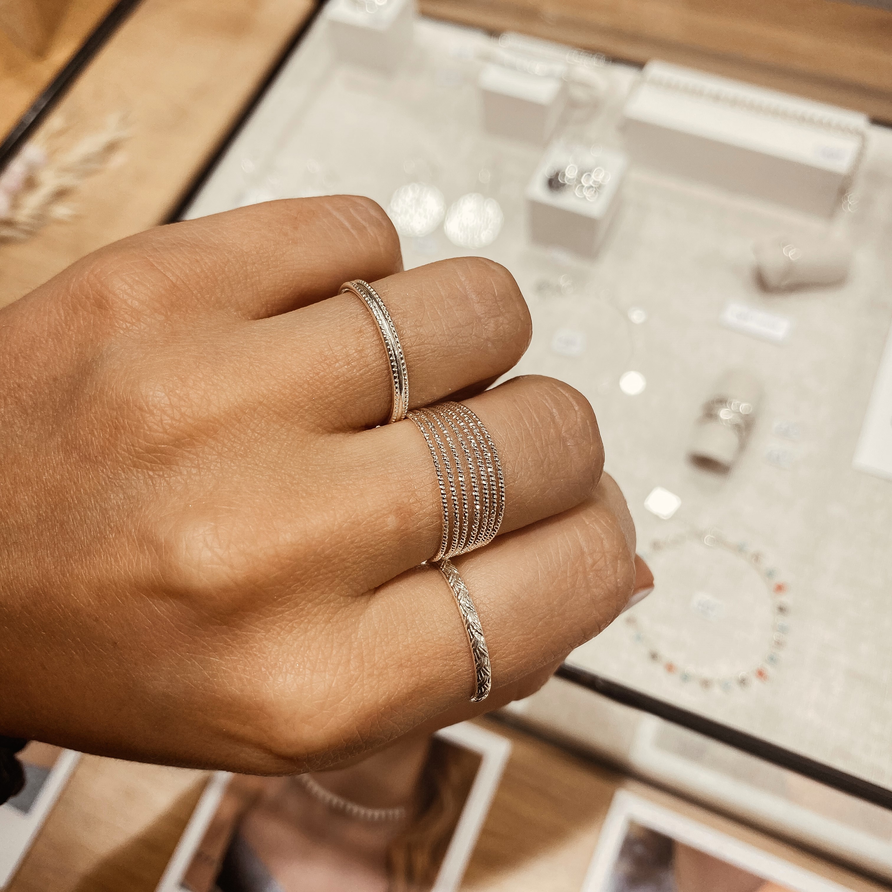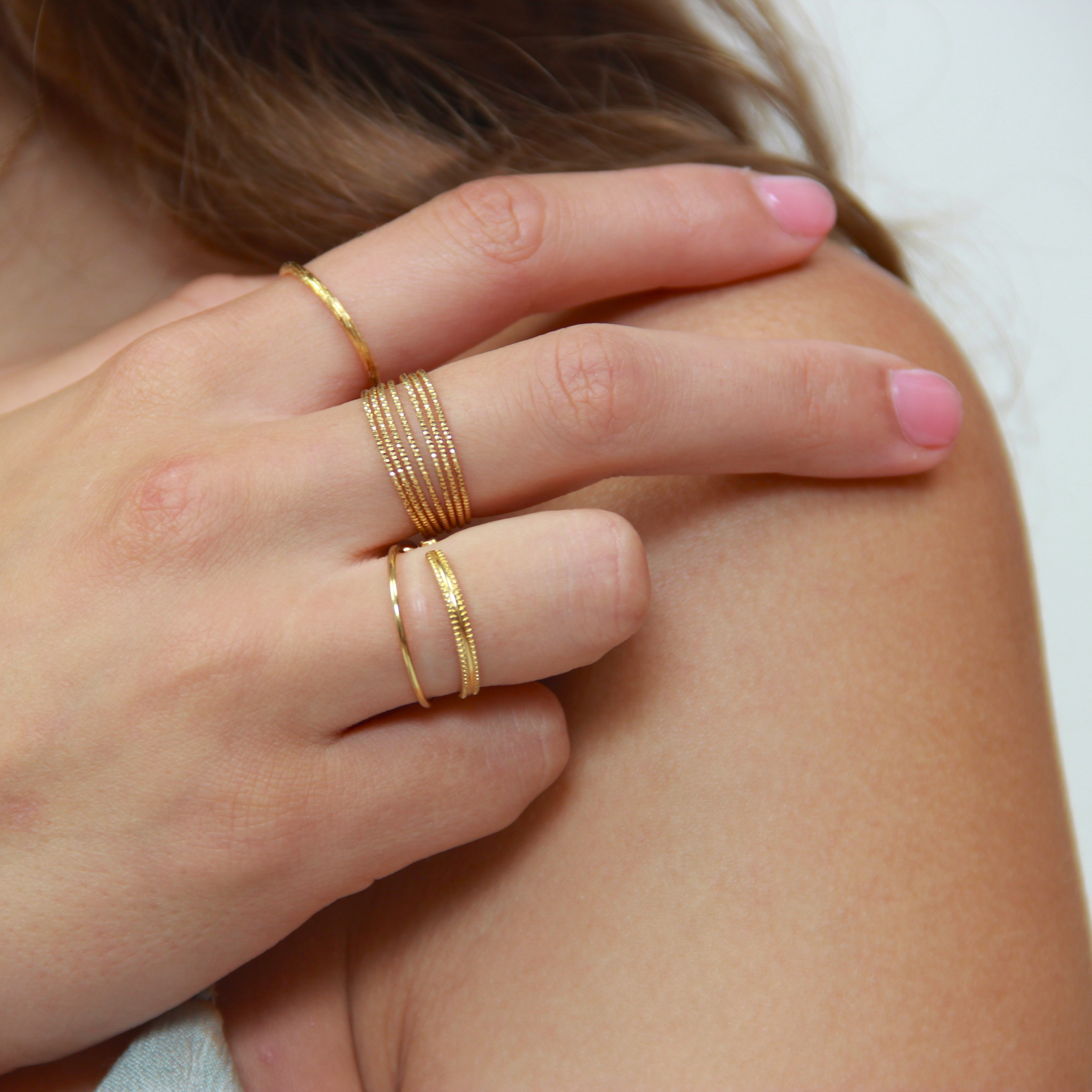 La bague Sophie est composée de plusieurs petits anneaux, trés fins diamantés reliés ensemble