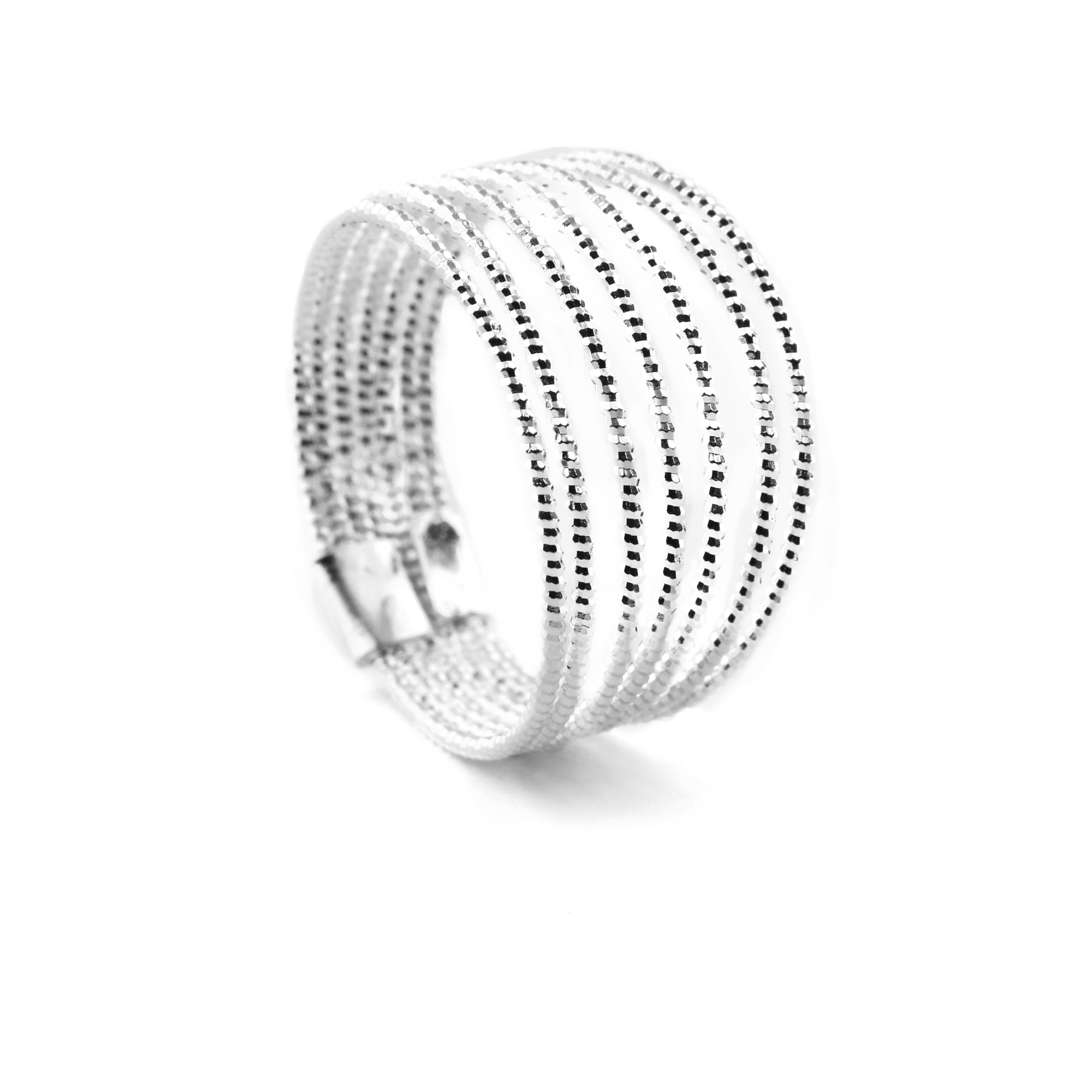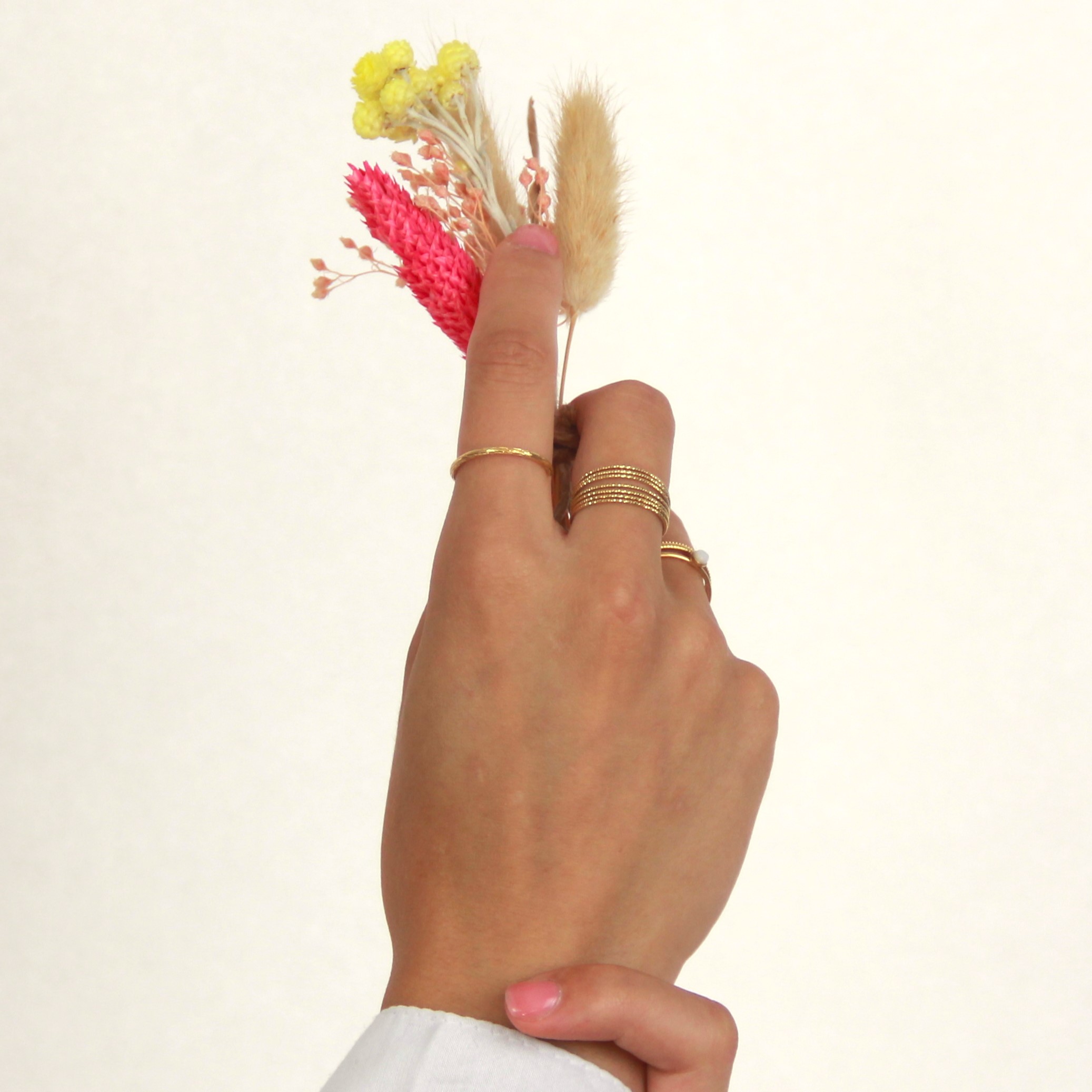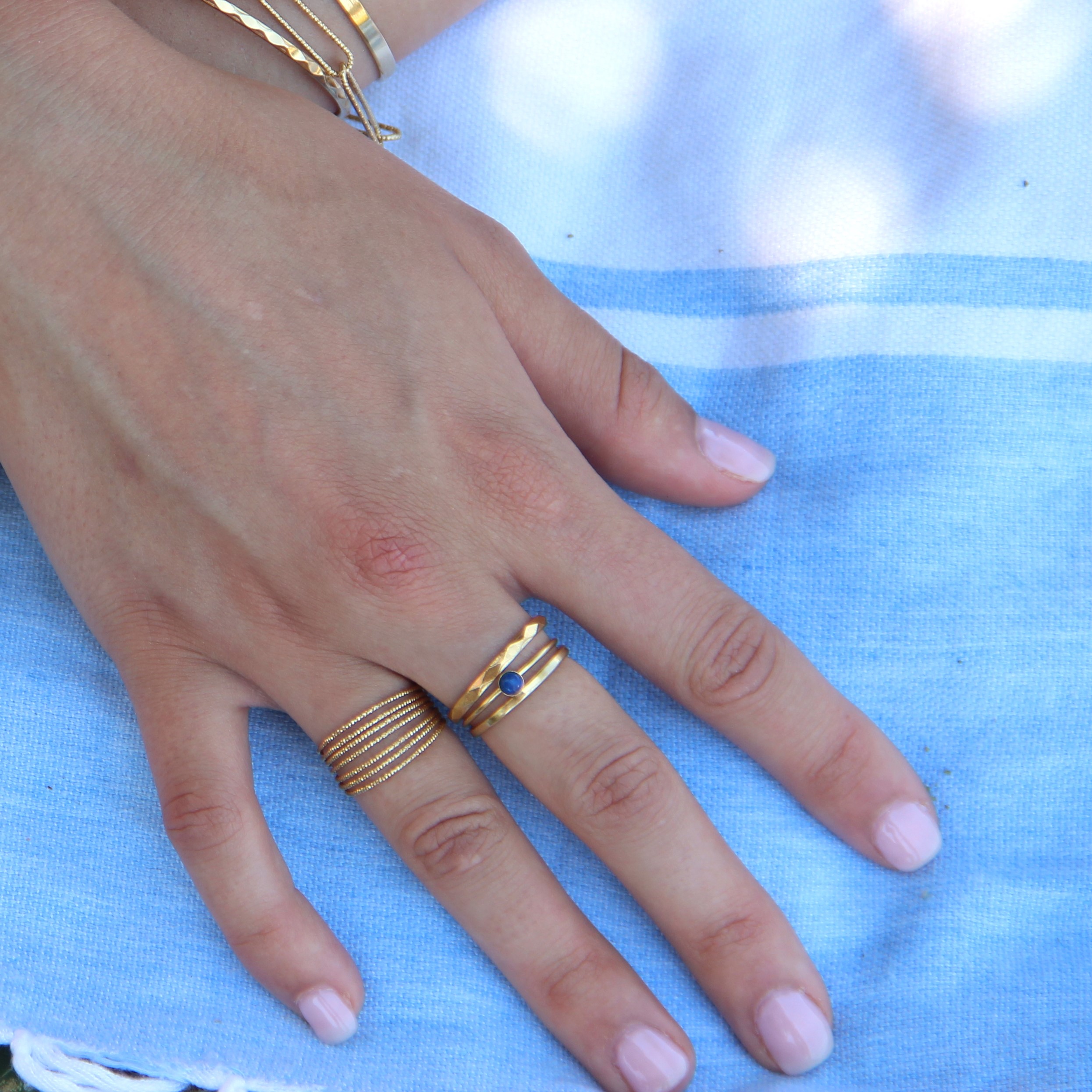 La bague Sophie est composée de plusieurs petits anneaux, trés fins diamantés reliés ensemble.