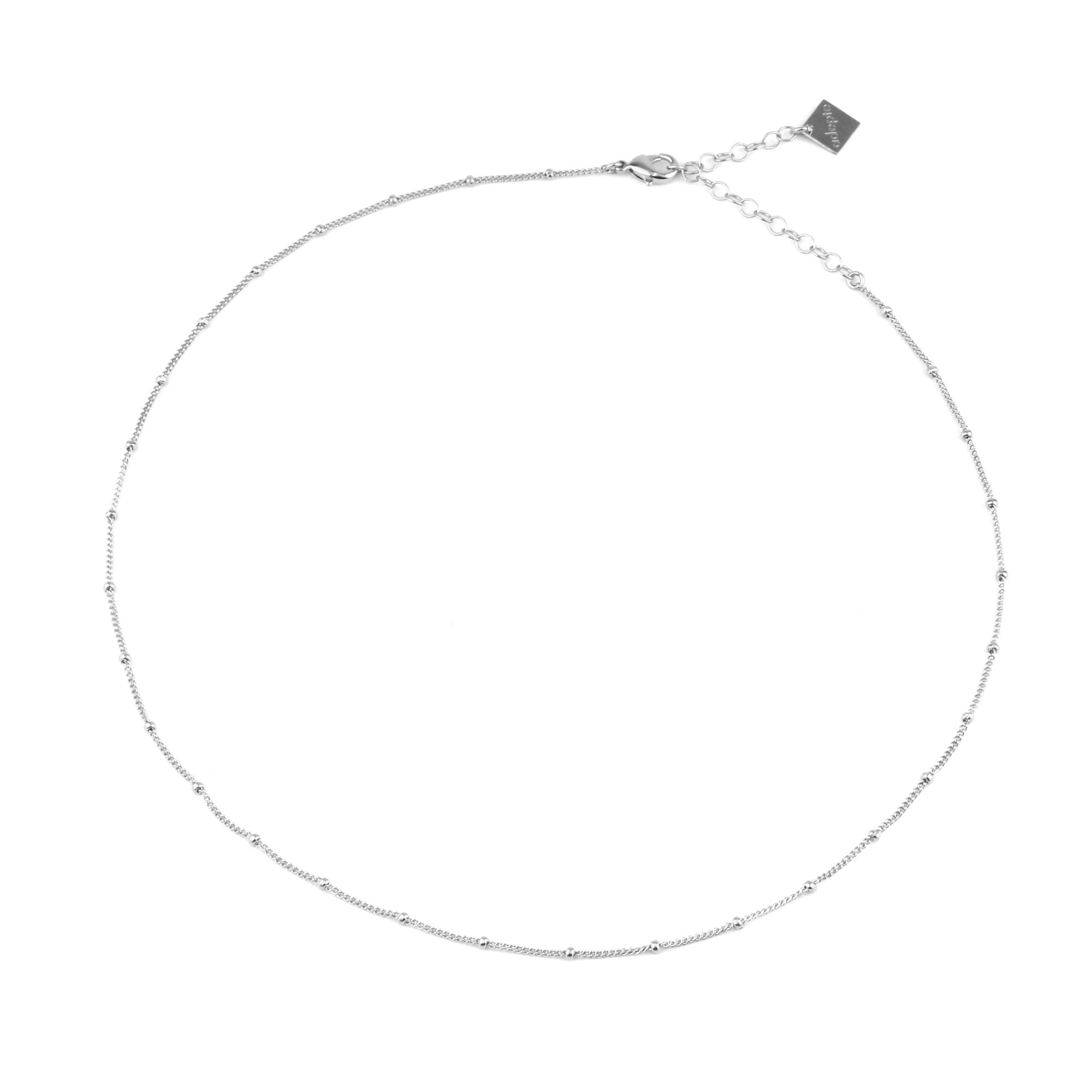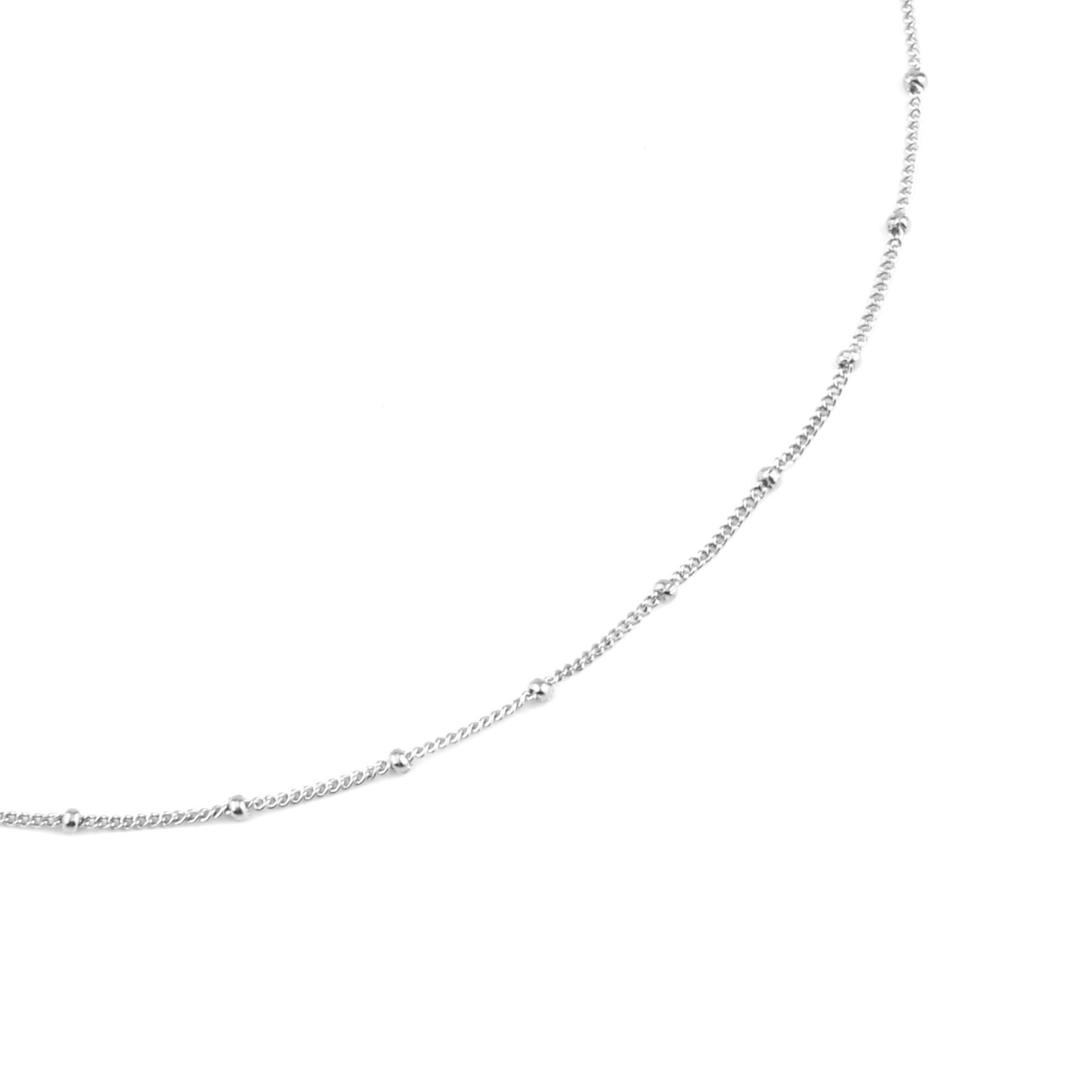 Le collier Mina est composé d'une chaîne incrustée de petites billes en plaqué argent.