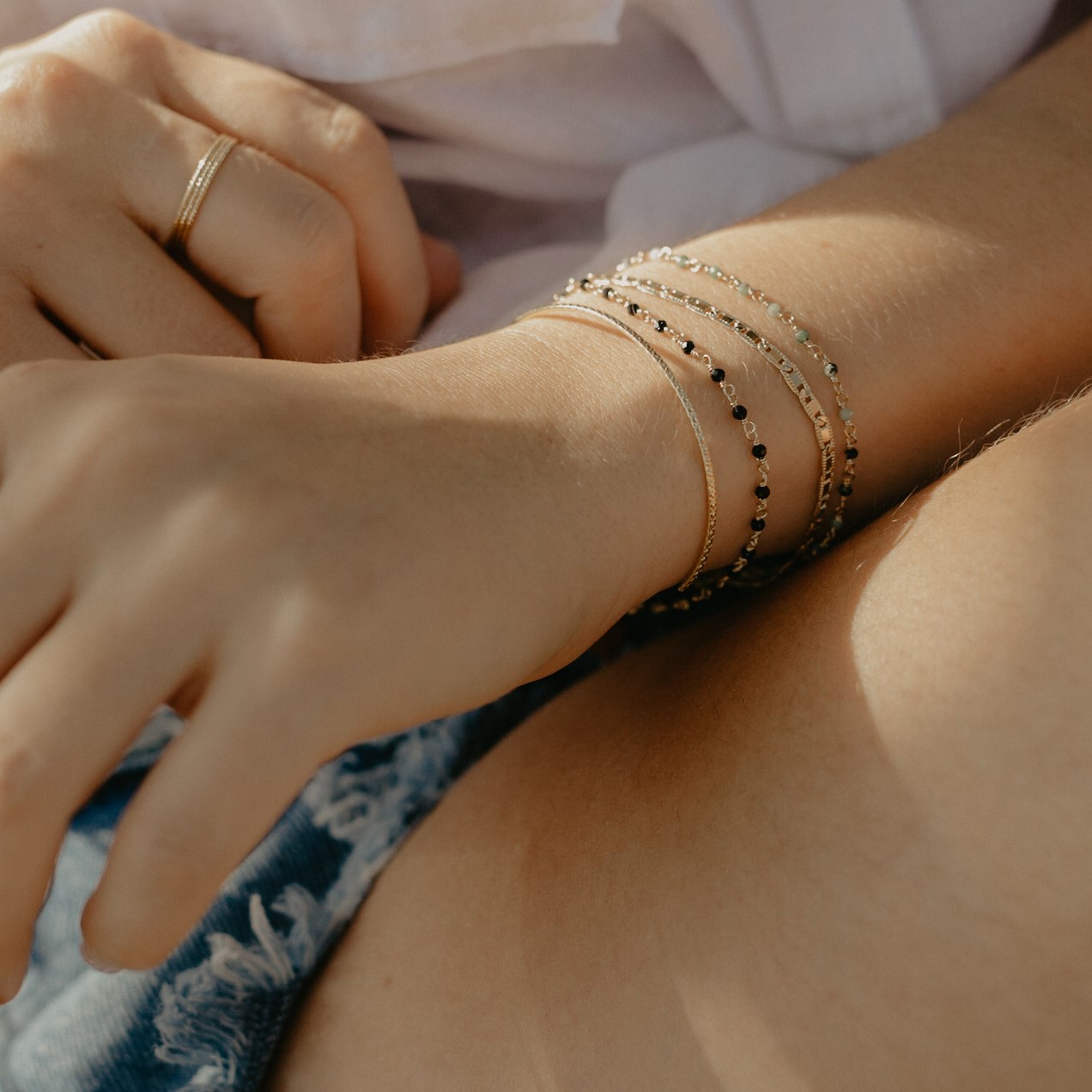 Longueur totale du bracelet : 17 cm (14 cm + 3 cm de chaîne de réglage)