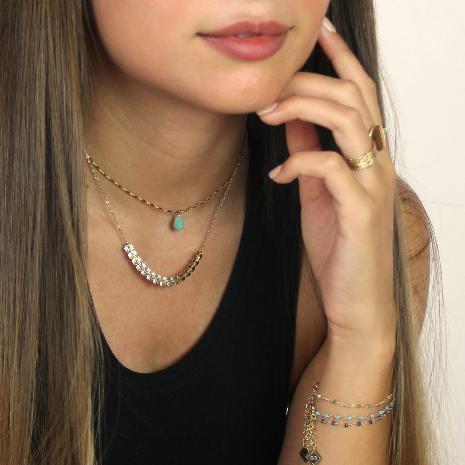 Collier de 38 cm + 5 cm de chaîne de réglage.