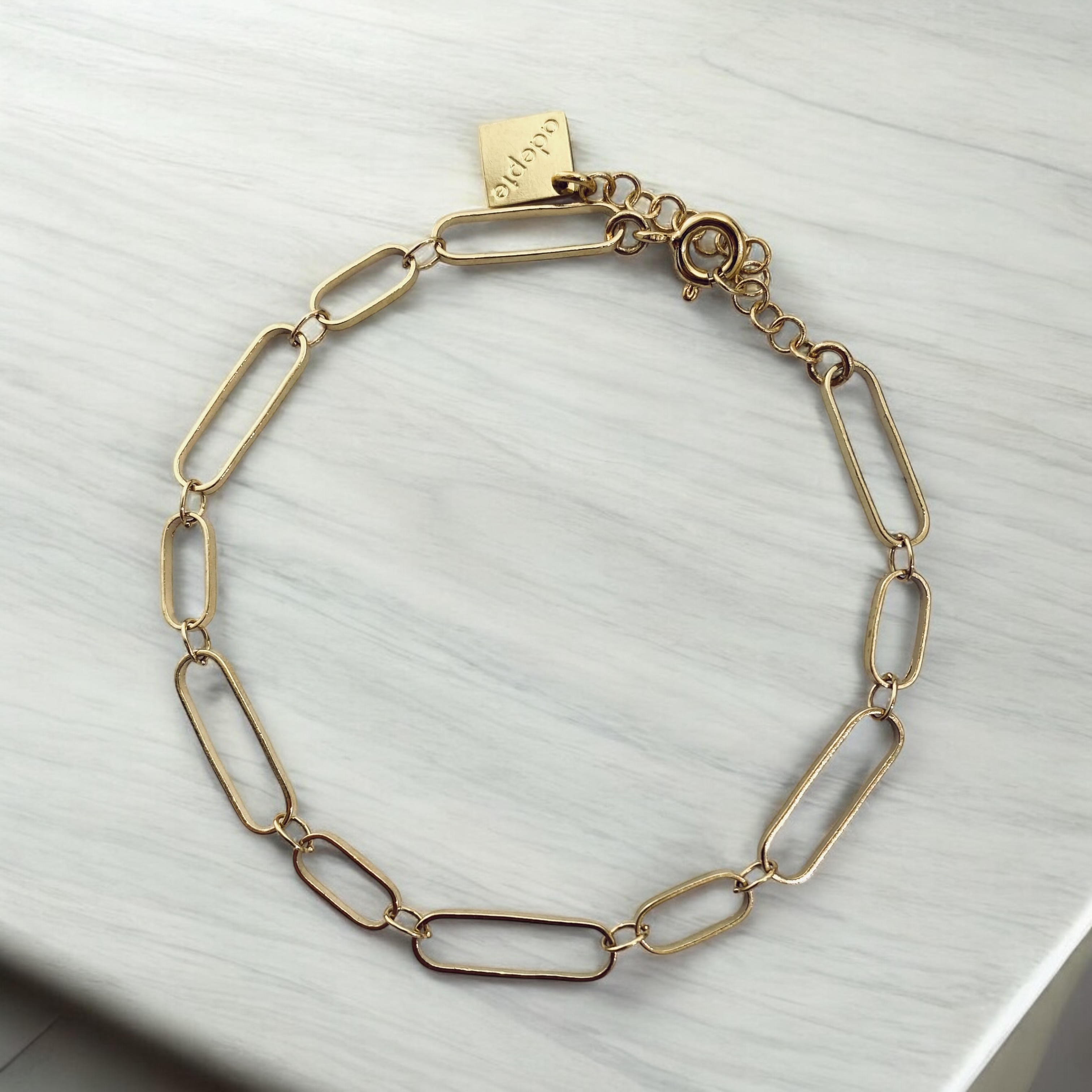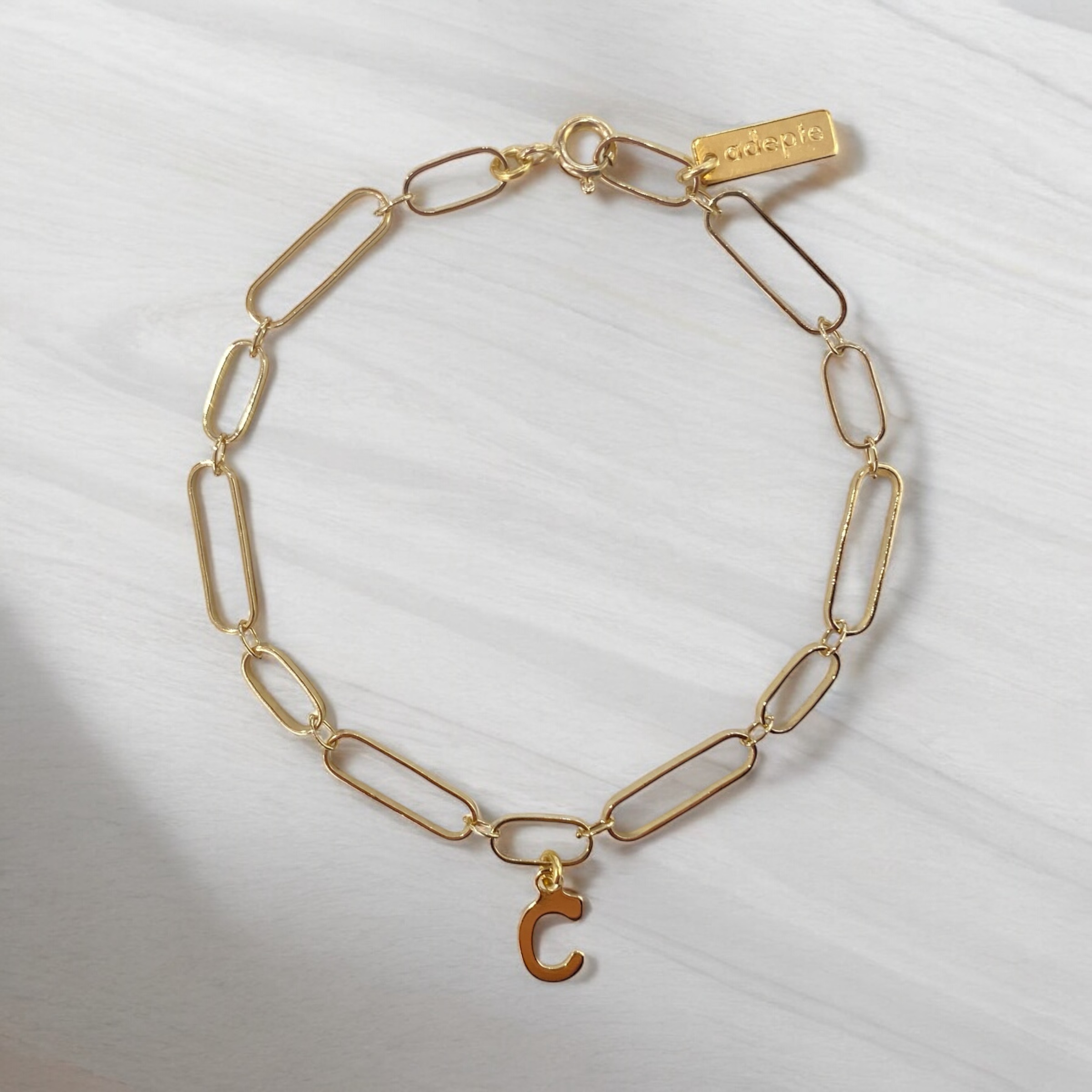 Ce bijou est personnalisableUn bijou qui fait tout, sauf passer inaperçu. Le Bracelet Manon, avec sa chaîne dorée à l’or fin, est un incontournable de votre collection. Sa longueur de 17,5 cm s’adapte parfaitement à votre poignet grâce à un astucieux système de fermoir qui s’attache où vous le souhaitez sur la chaîne. Simple, pratique, élégant : on dit oui !