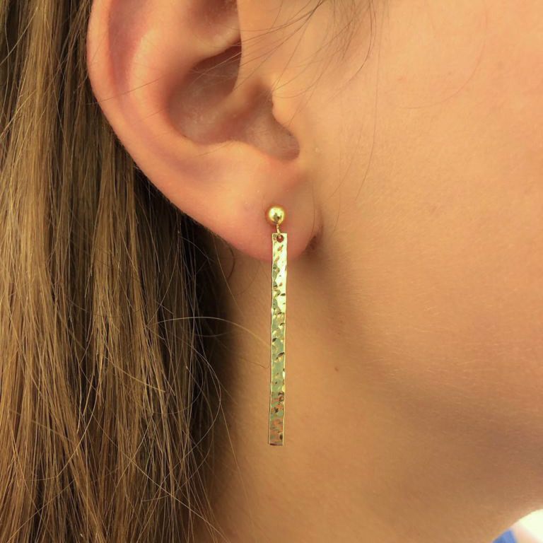 Les boucles d'oreilles Julie sont composées d'une perle dorée et d'une barrette martelée.