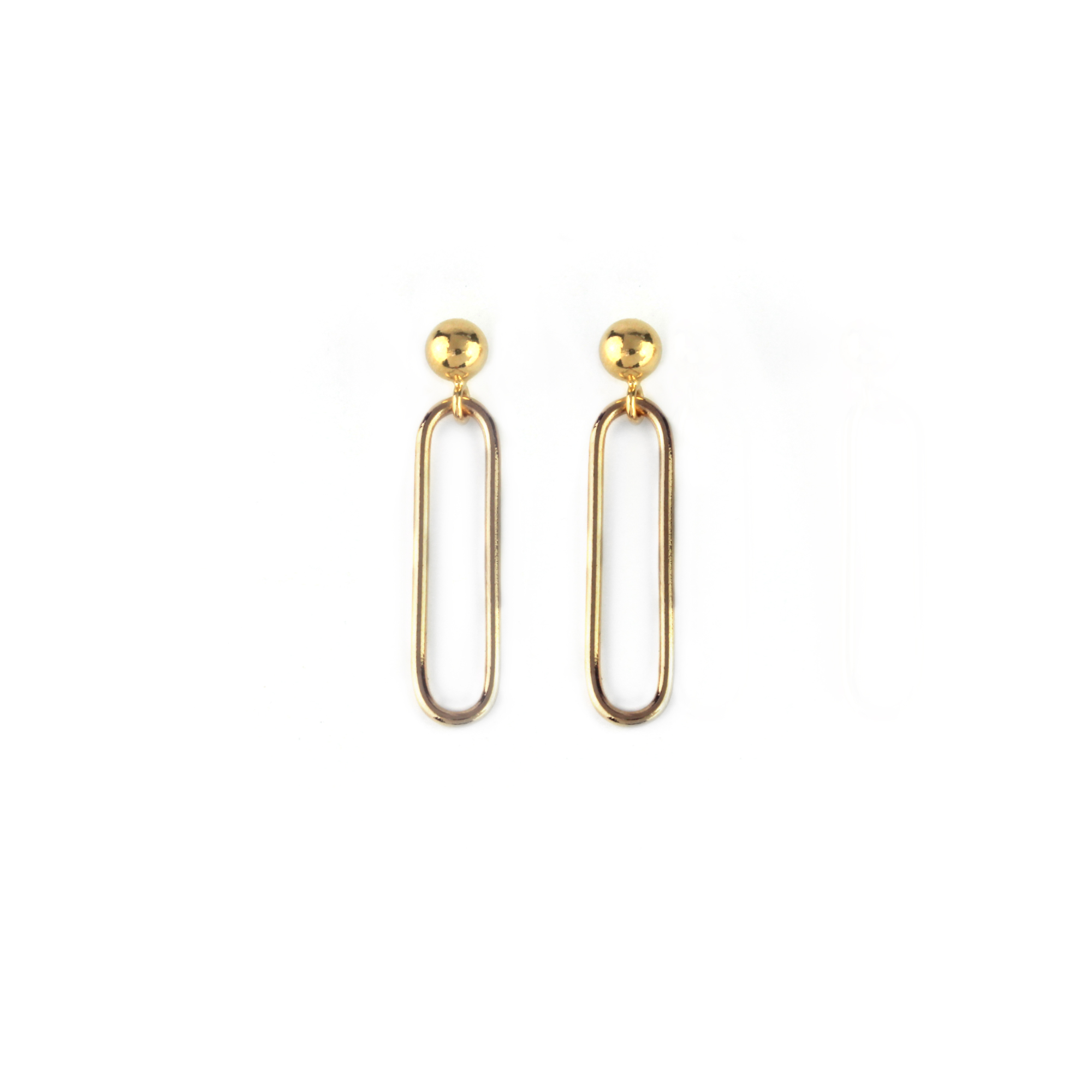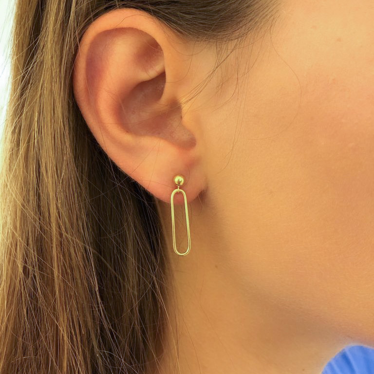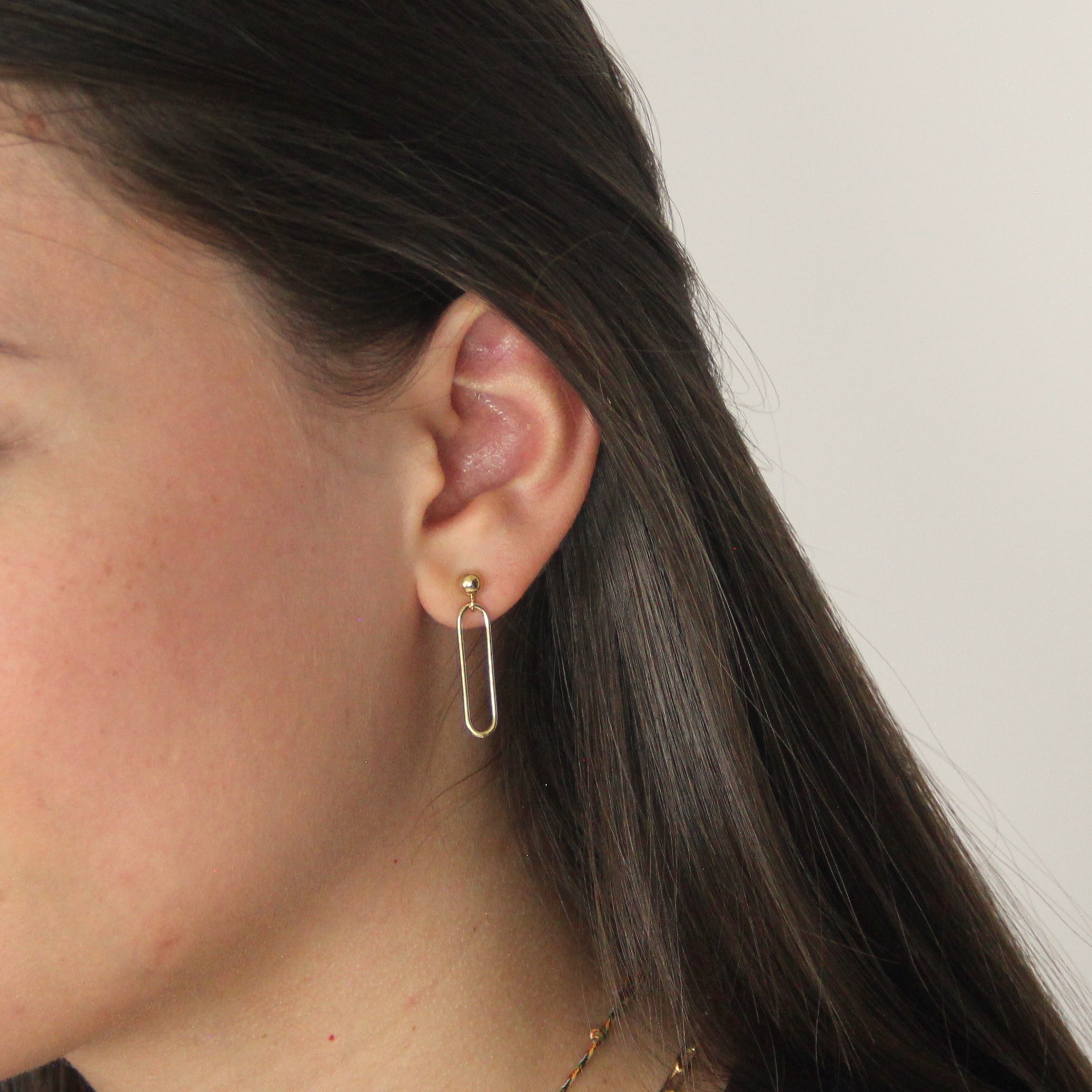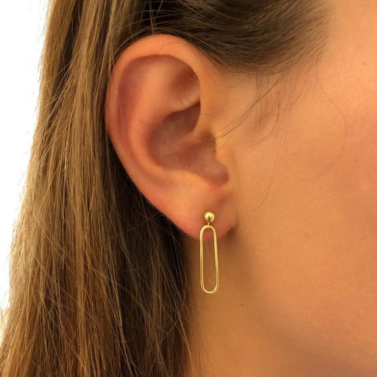 Les boucles d'oreilles Lou sont composées d'une petite perle dorée et d'un maillon rectangle.