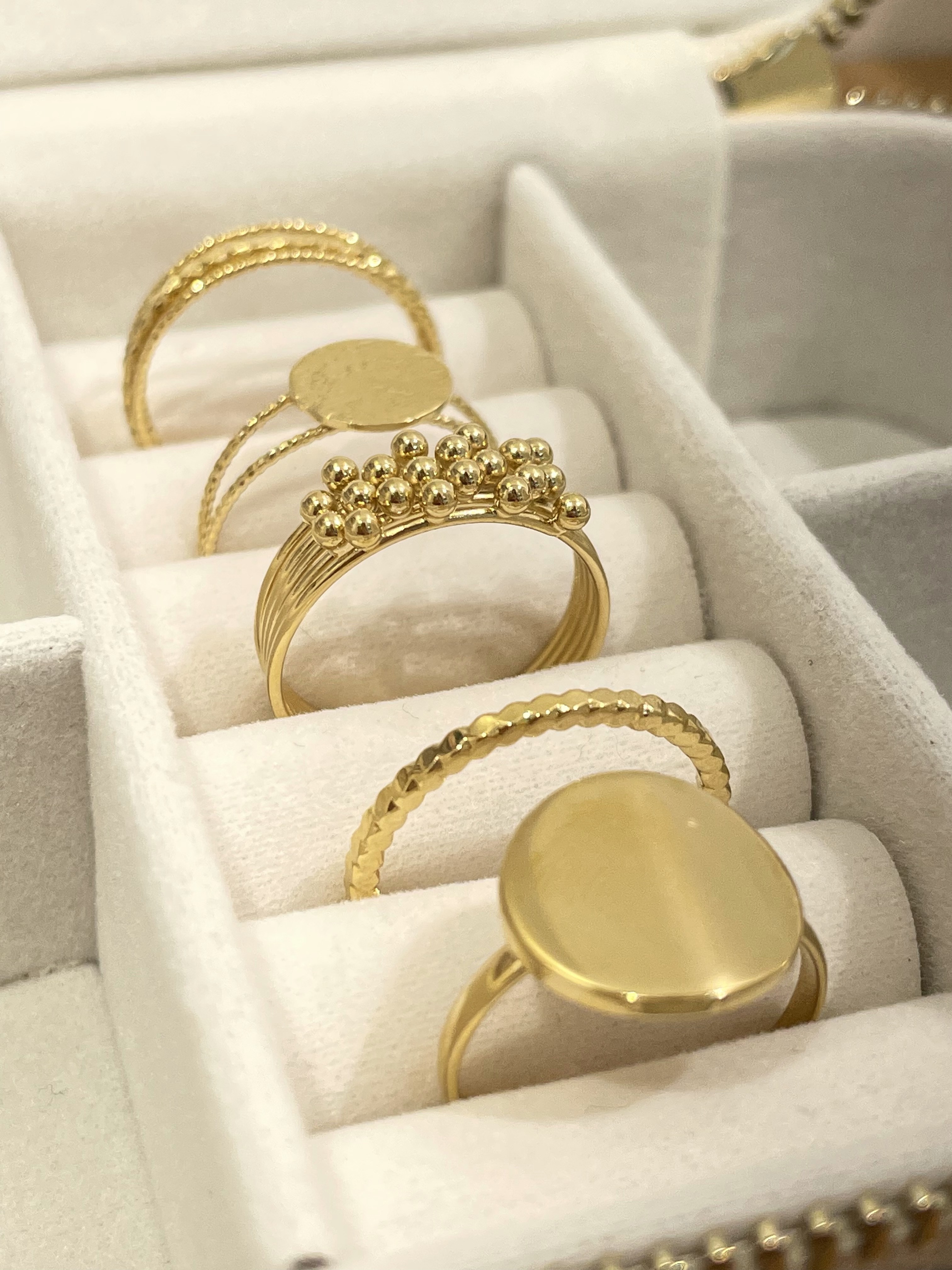 La bague Lagon est ajustable et s’adapte à tous les doigts.
