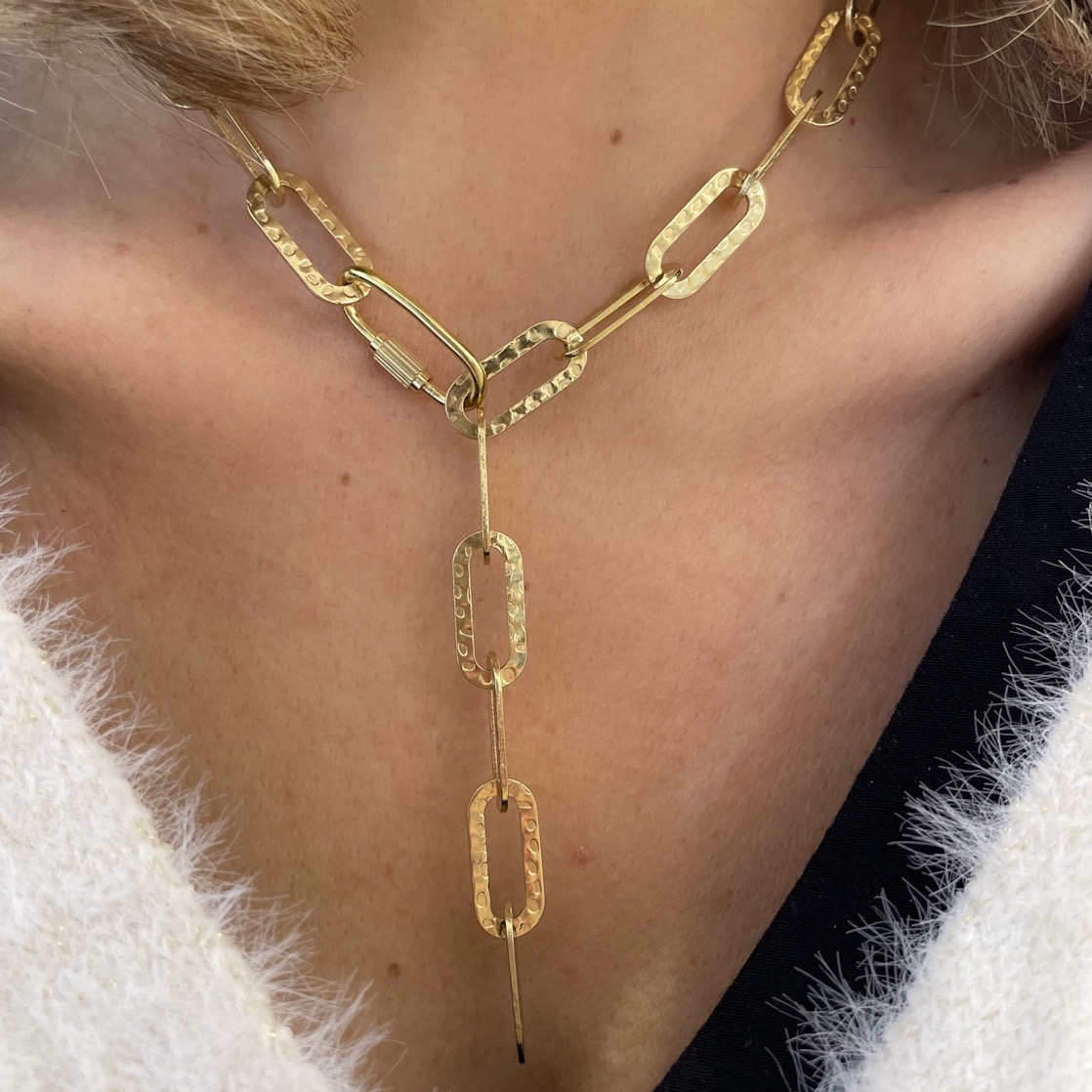 Ce bijou est personnalisableLe collier Margot est composé d'une chaîne aux larges maillons martelés dorés à l'or fin.