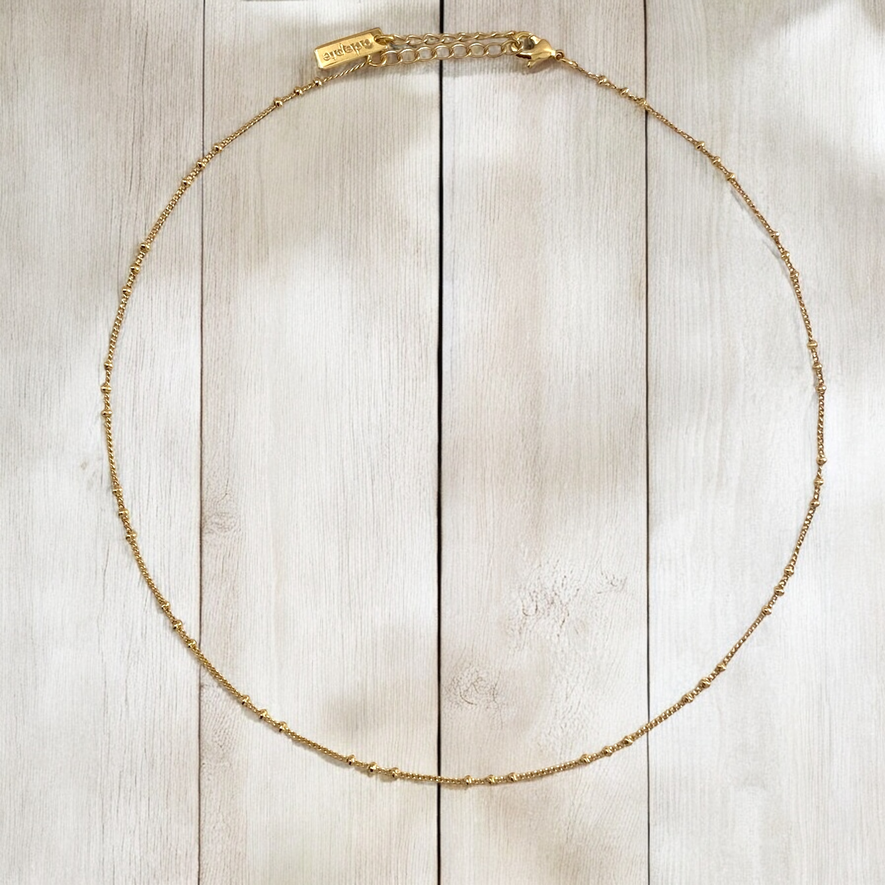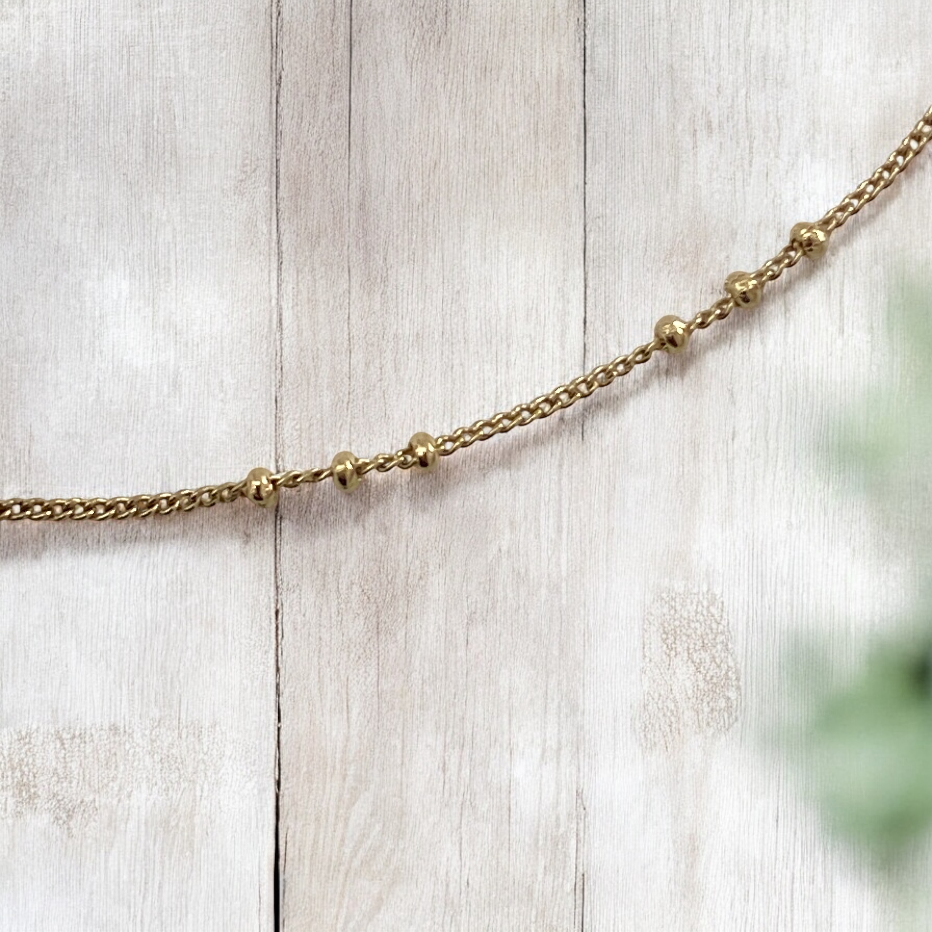 Ce bijou est personnalisableCollier Mina est composée d’une chaîne incrustée de petites billes dorées à l’or fin.