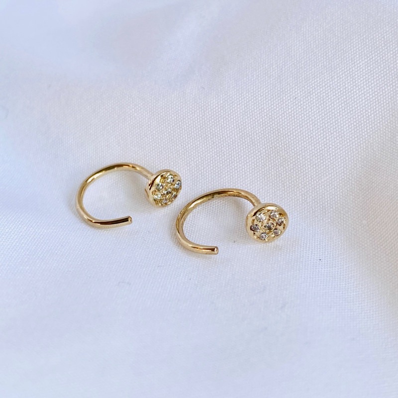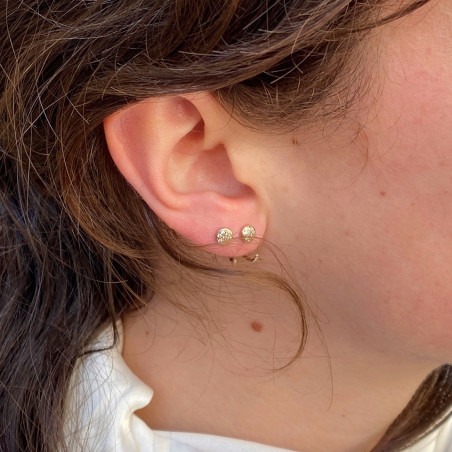 Petite créole en plaqué or 3 microns , pavage de zircons sur le sujet rond.