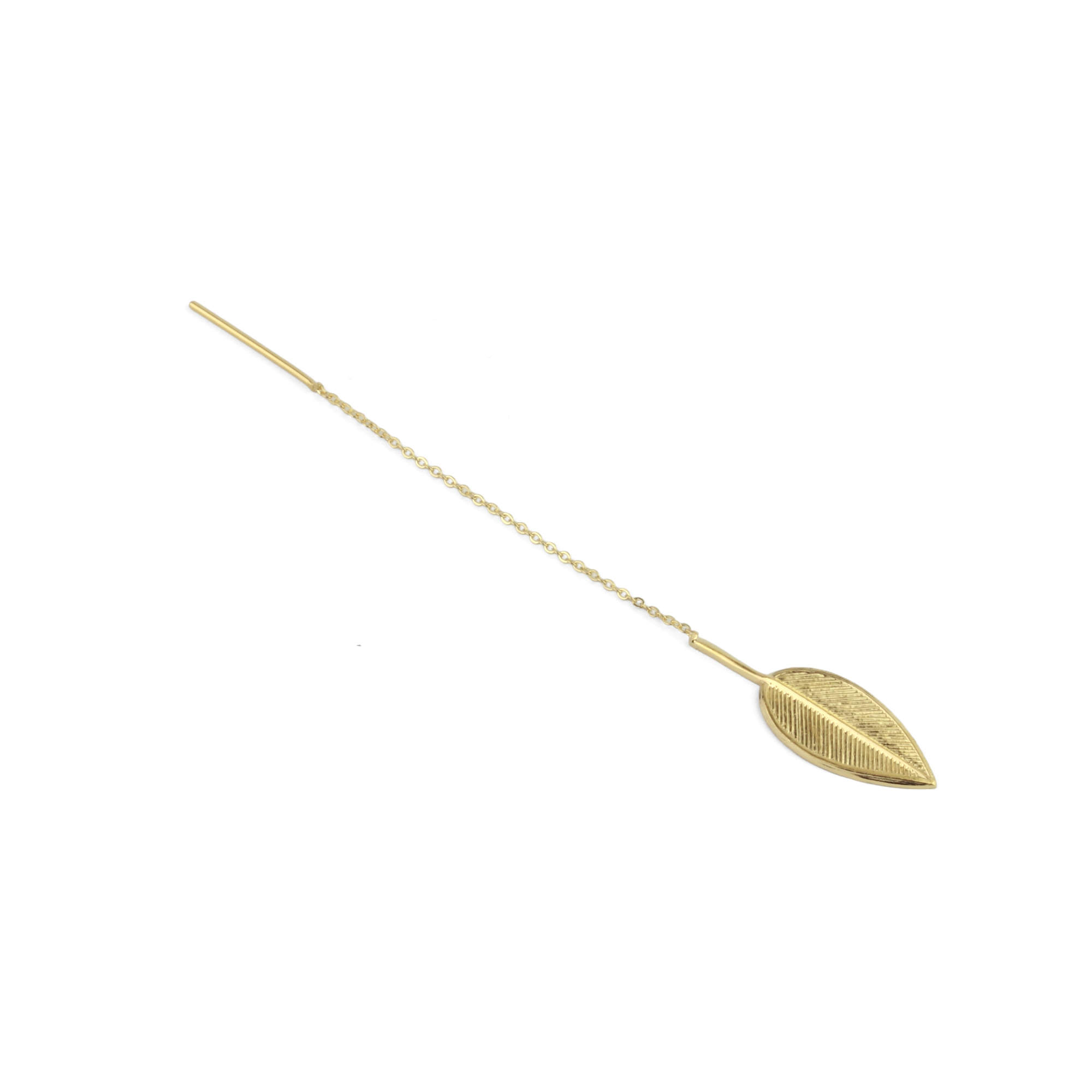 La boucle d'oreille Jane est composée d'une fine tige, d'une chaine qui se tremine par une petite feuille.