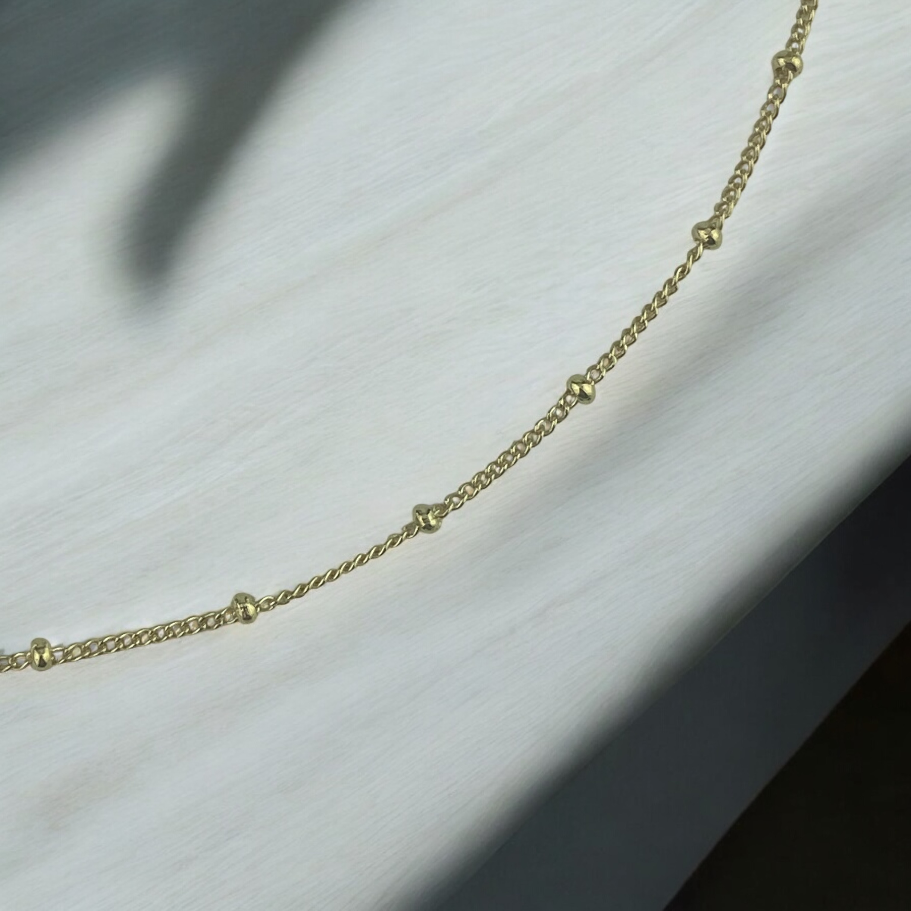 Ce bijou est personnalisableCollier Mina est composée d’une chaîne incrustée de petites billes dorées à l’or fin.