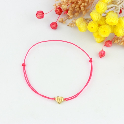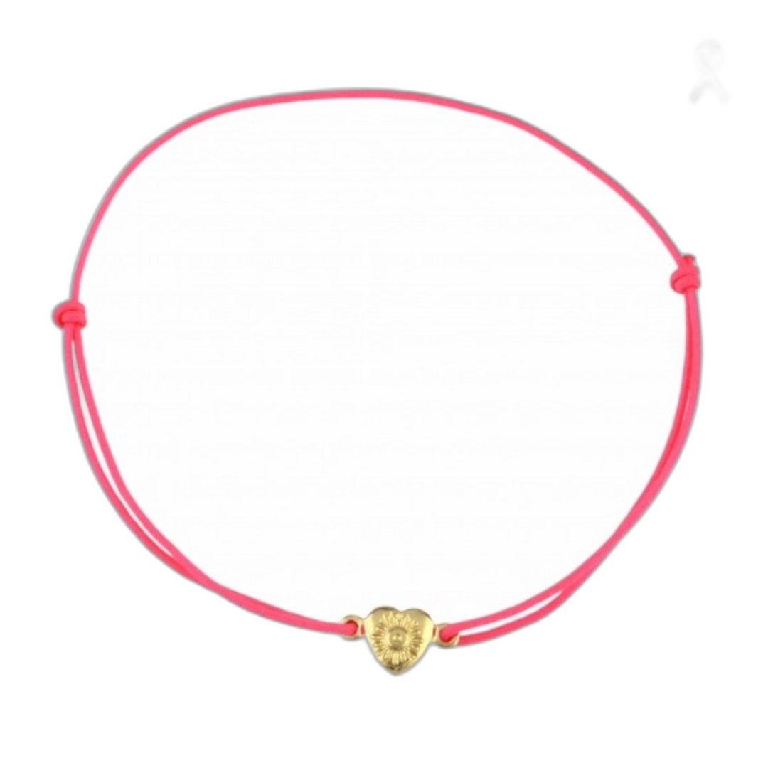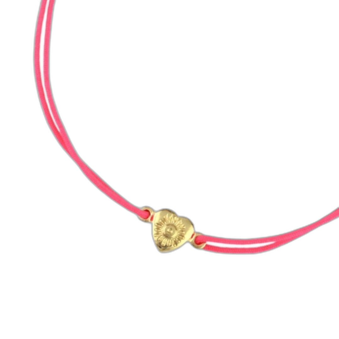 Bracelet composé d'un cordon résistant rose fluo et d'un petit cœur doré à l'or fin.