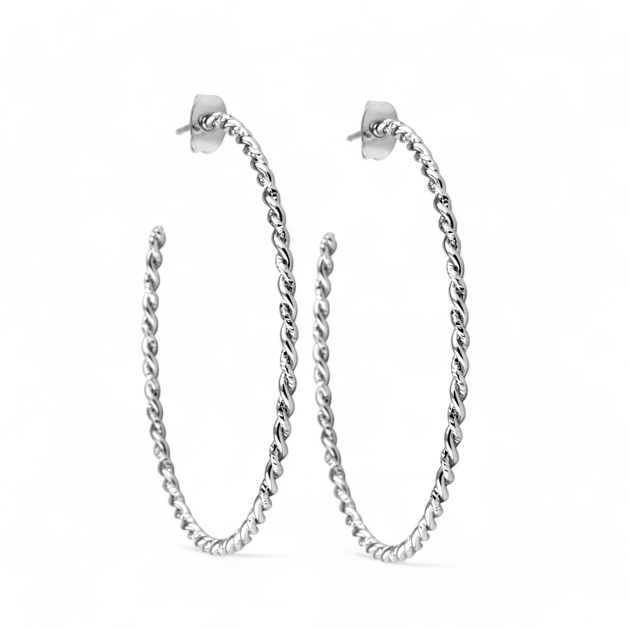 Boucles d'oreilles Créoles torsadées diamantées L plaqué argent