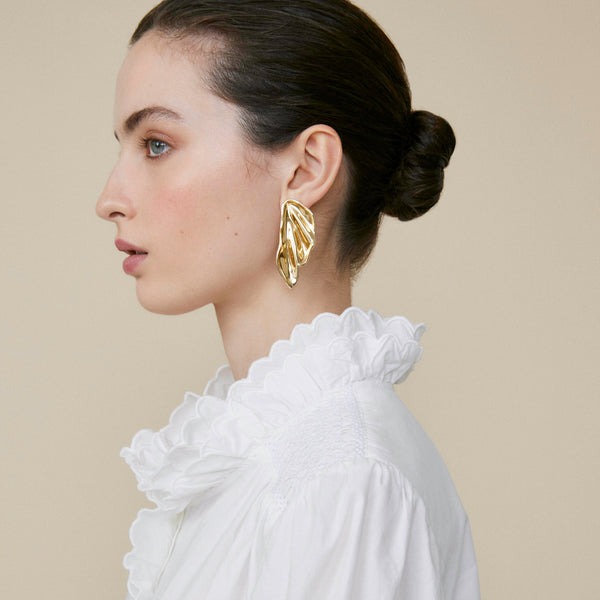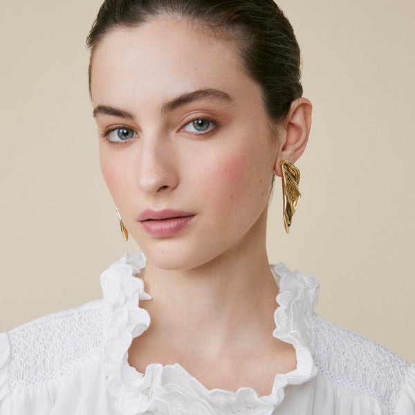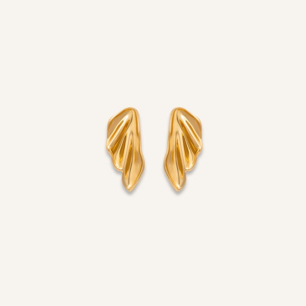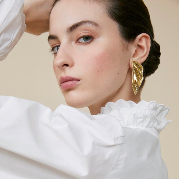 Boucles d'oreilles de forme organique en métal finition brillante.