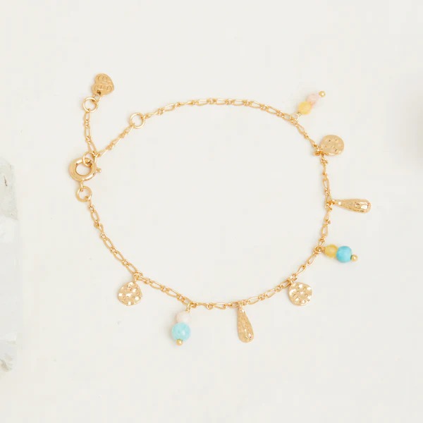 Laiton doré à l'or fin , turquoise, opale rose, amazonite claire et jaune.