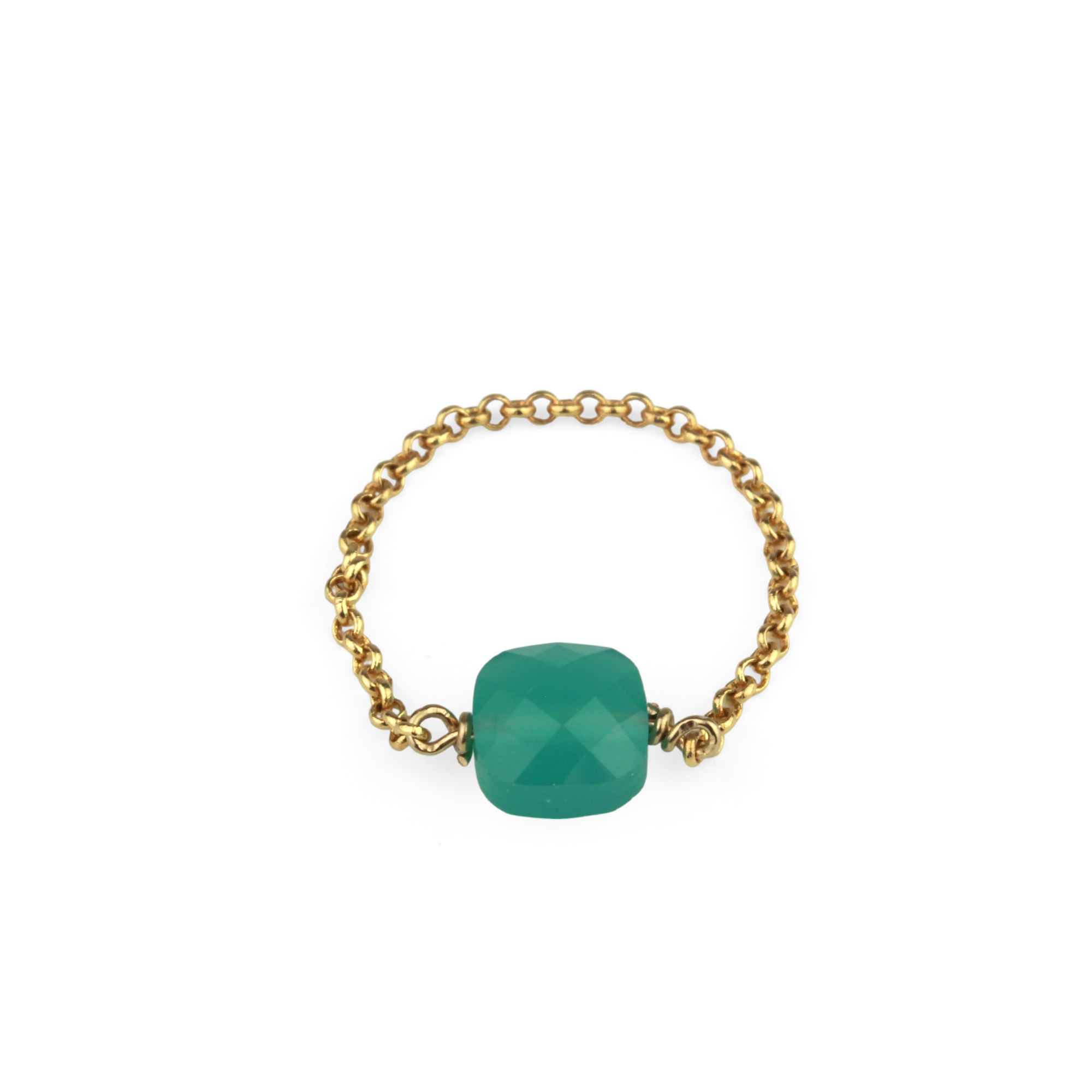 Elle est composée d'une chaîne et d'une perle en verre carrée et facettée.