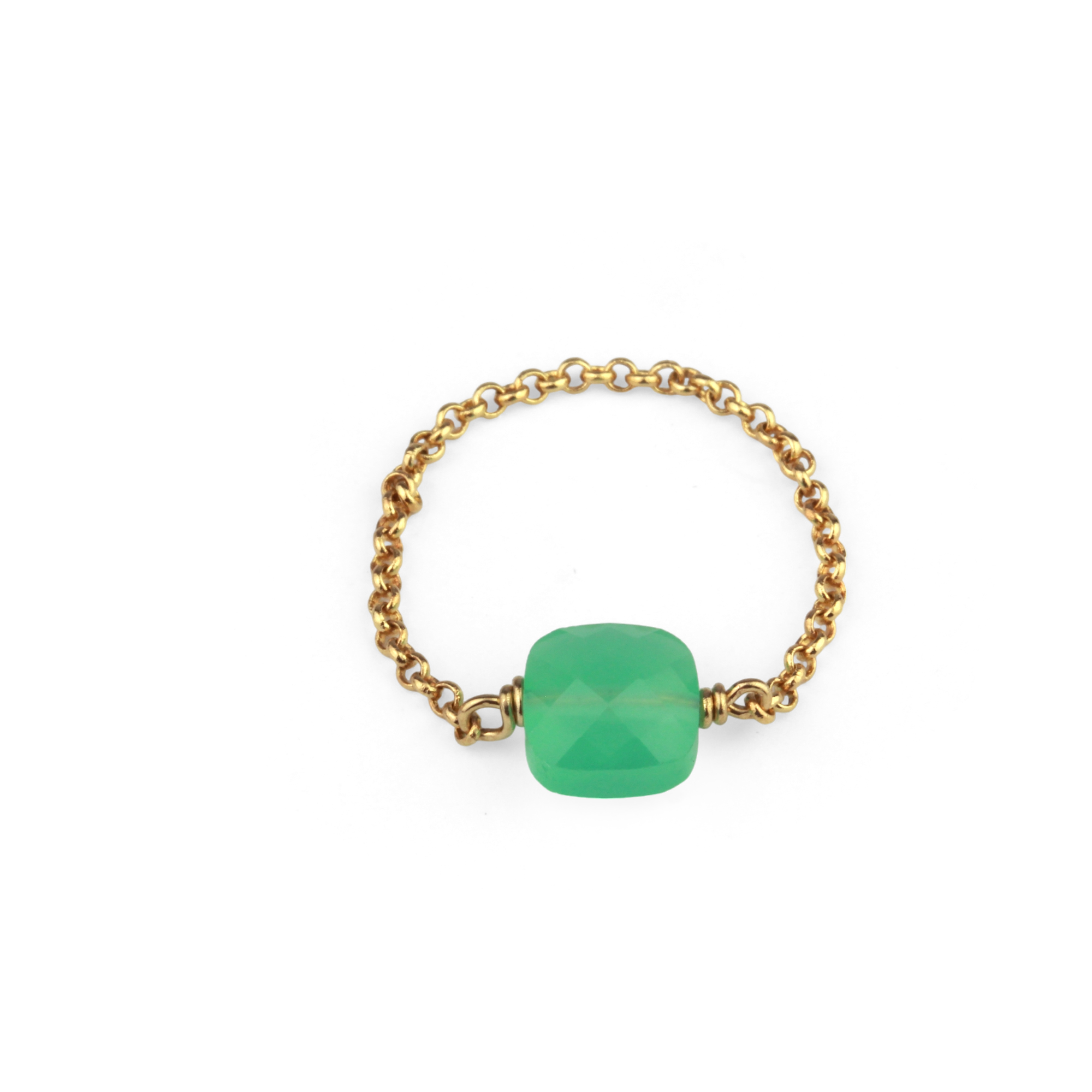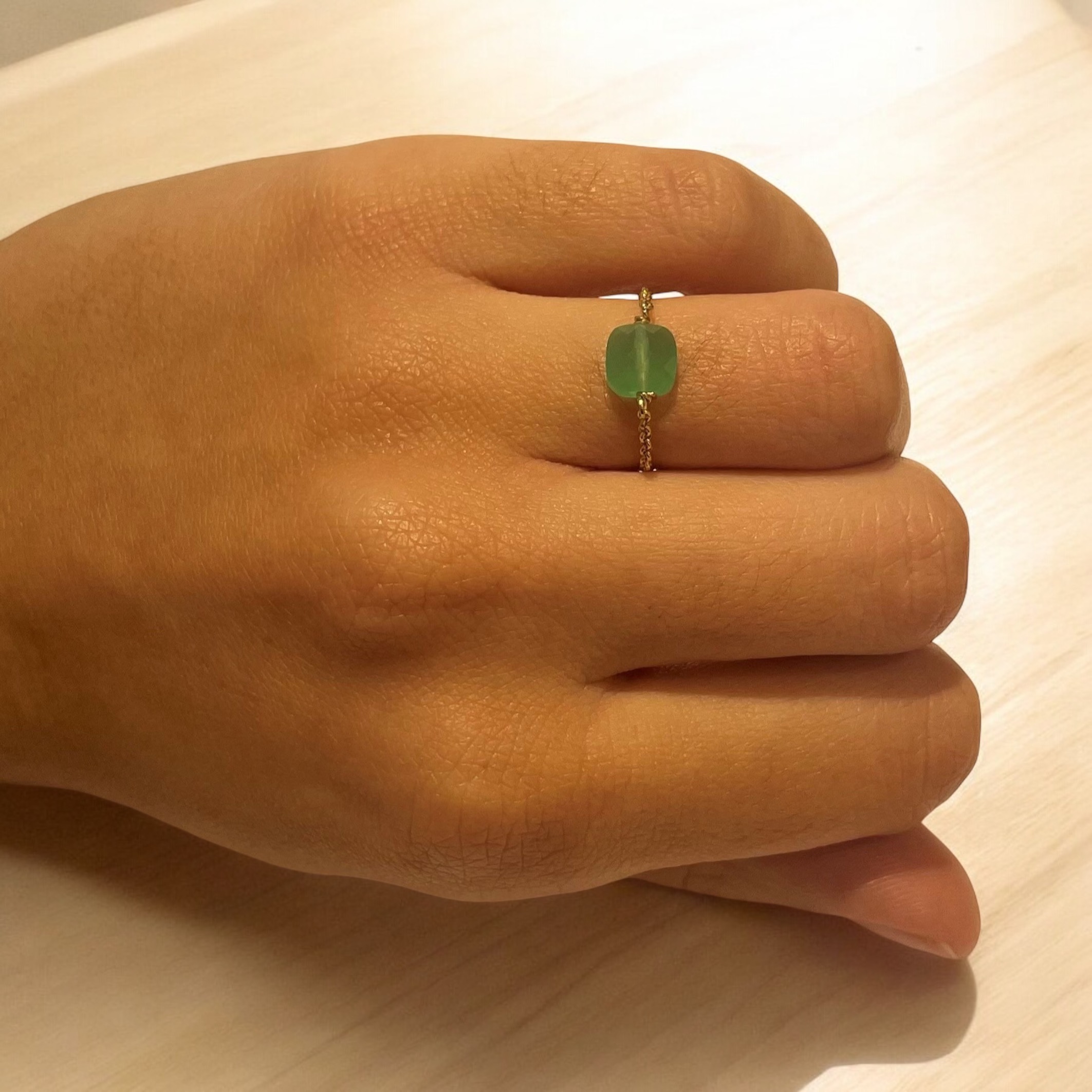 Elle est composée d'une chaîne et d'une perle en verre carrée et facettée.