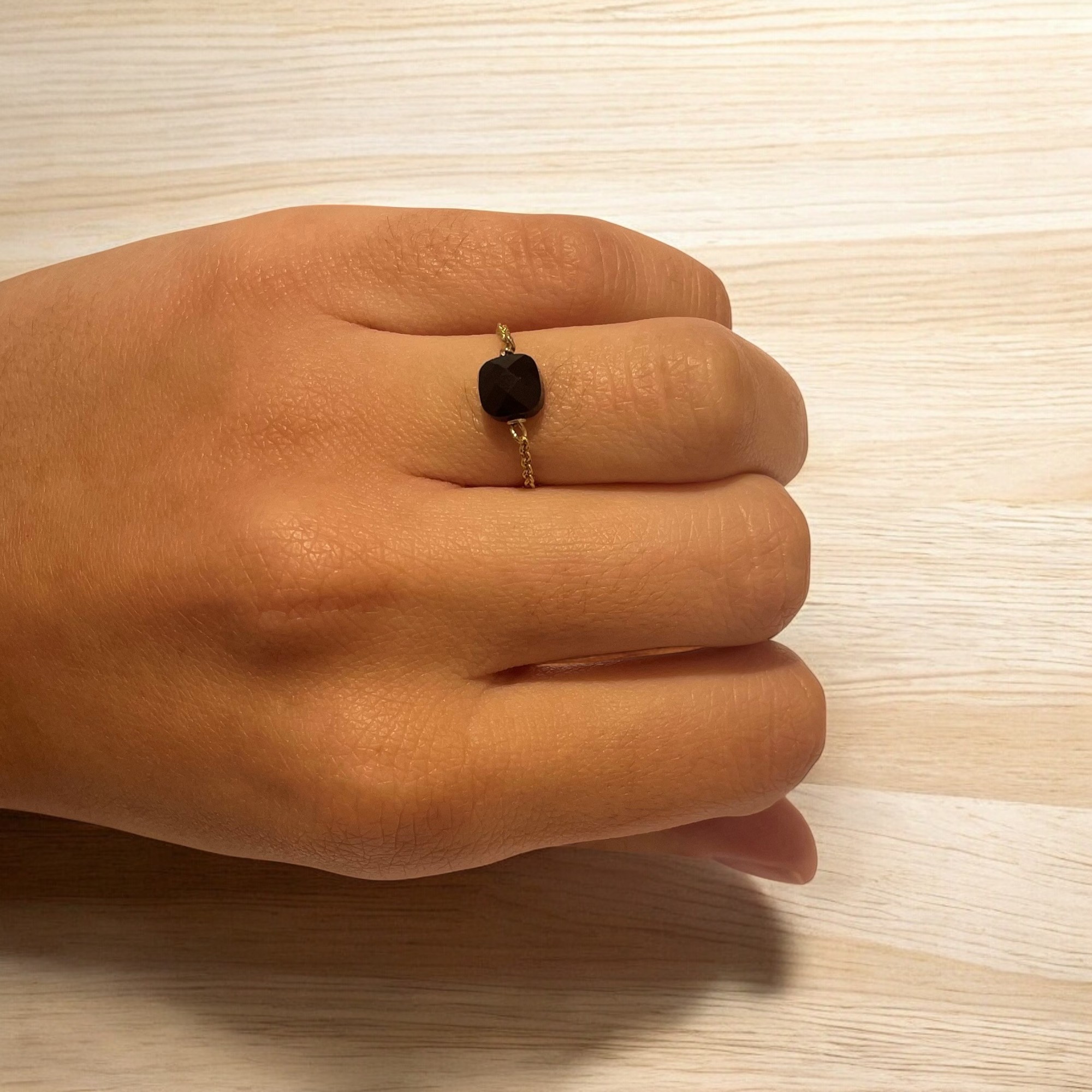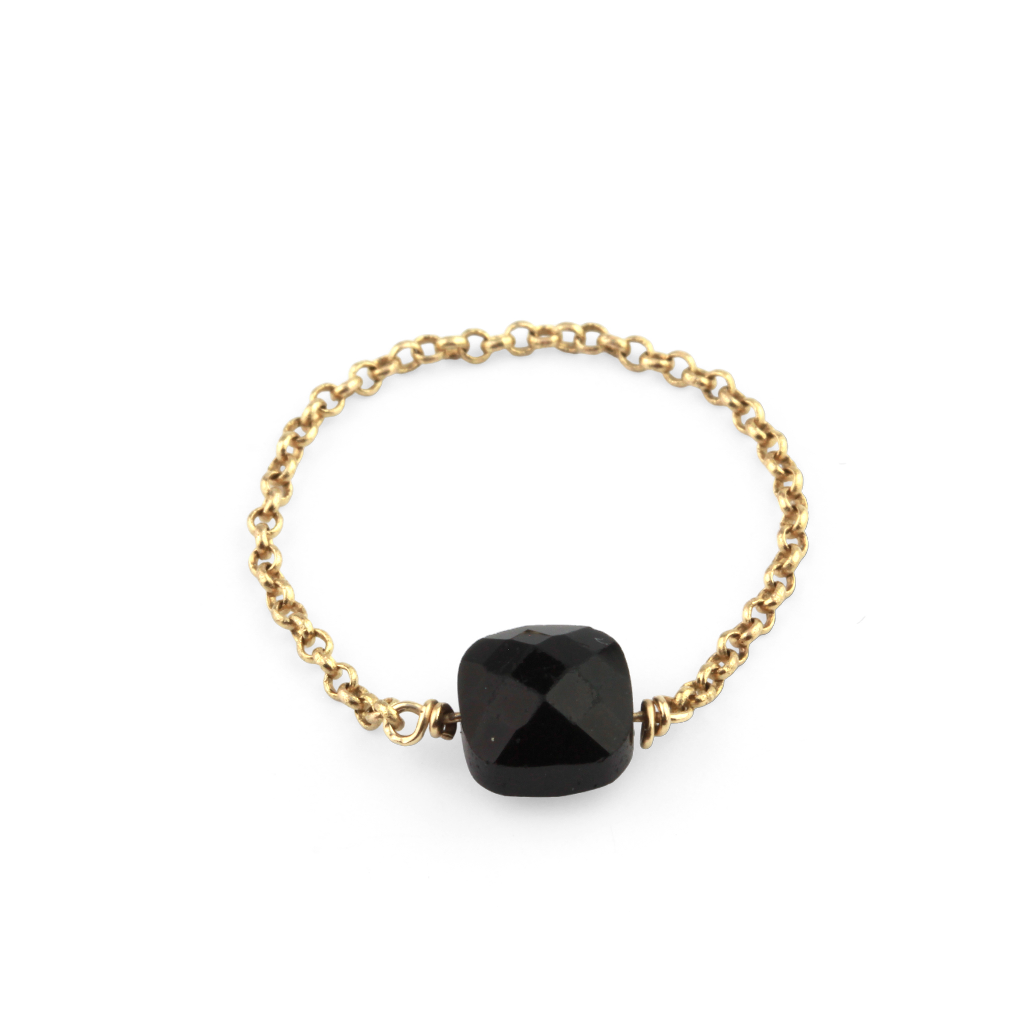 Elle est composée d'une chaîne et d'une perle en verre carrée et facettée.