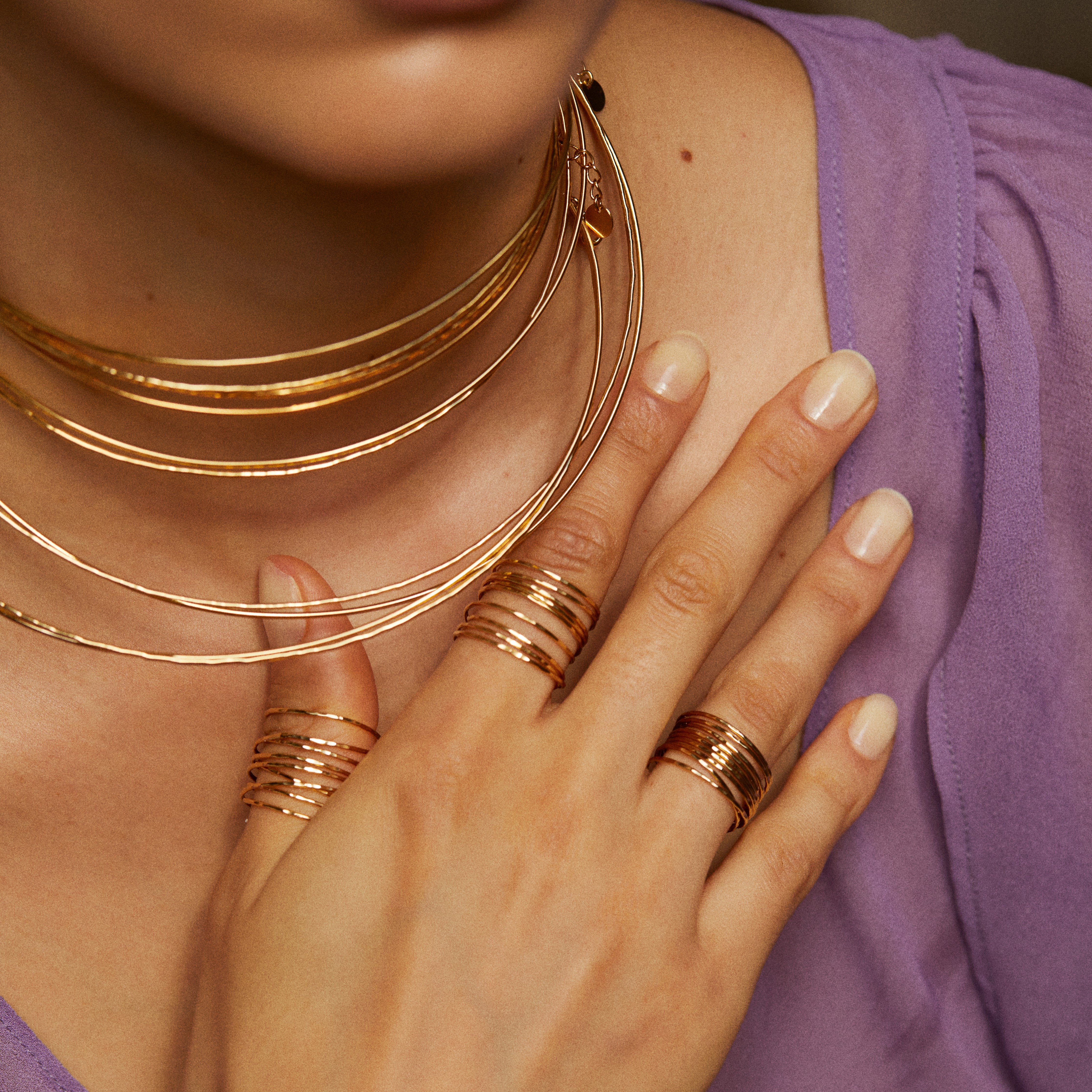 Bague 9 tours, martelée à la main et plaquée or.