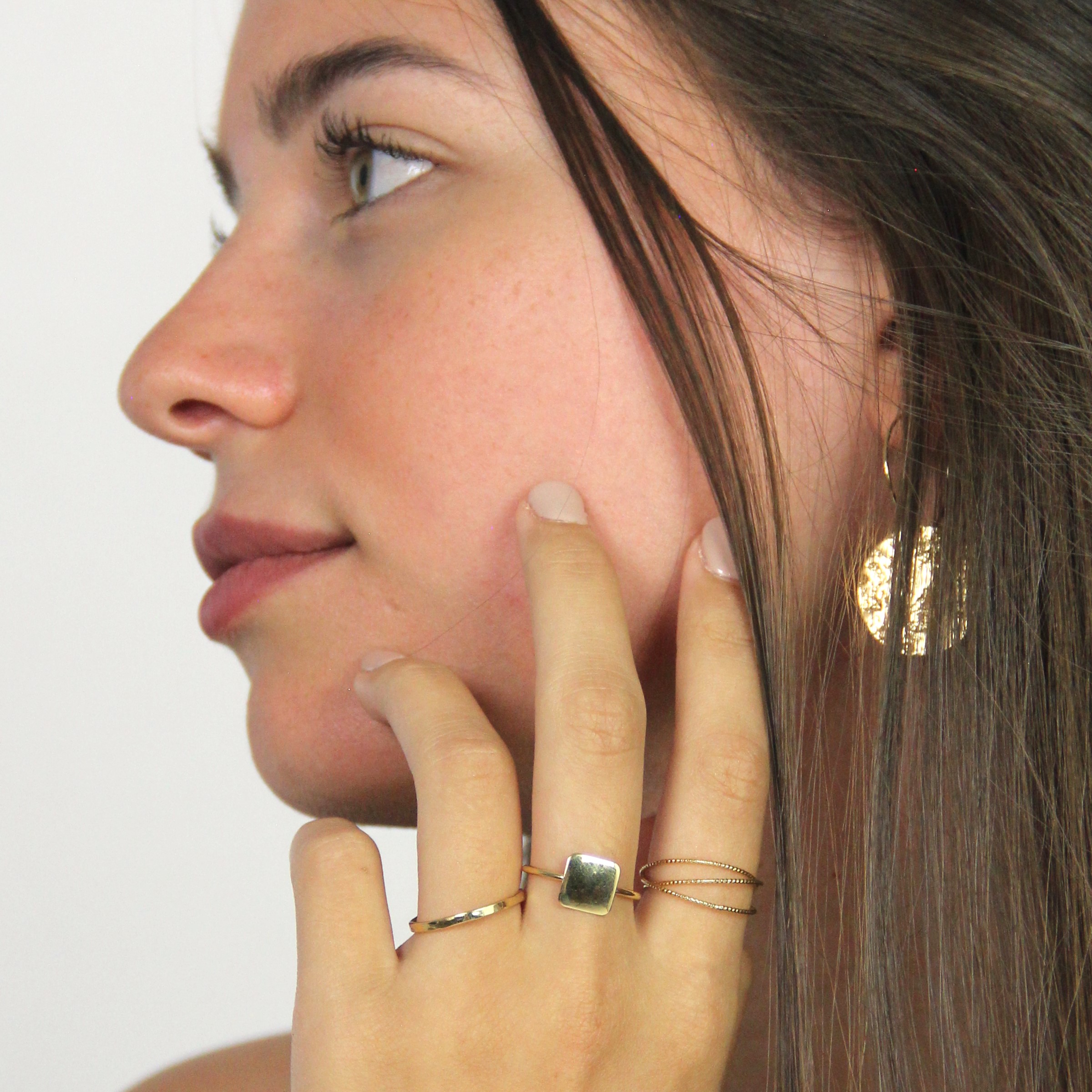 La bague Julie est ajustable et s’adapte à tous les doigts. Elle est martelée à la main.