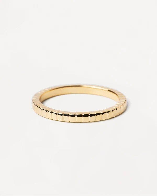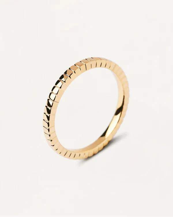 La bague Lea est en argent 925 plaqué or, il s'agit d'un anneau ciselé sur tout le tour de la bague.