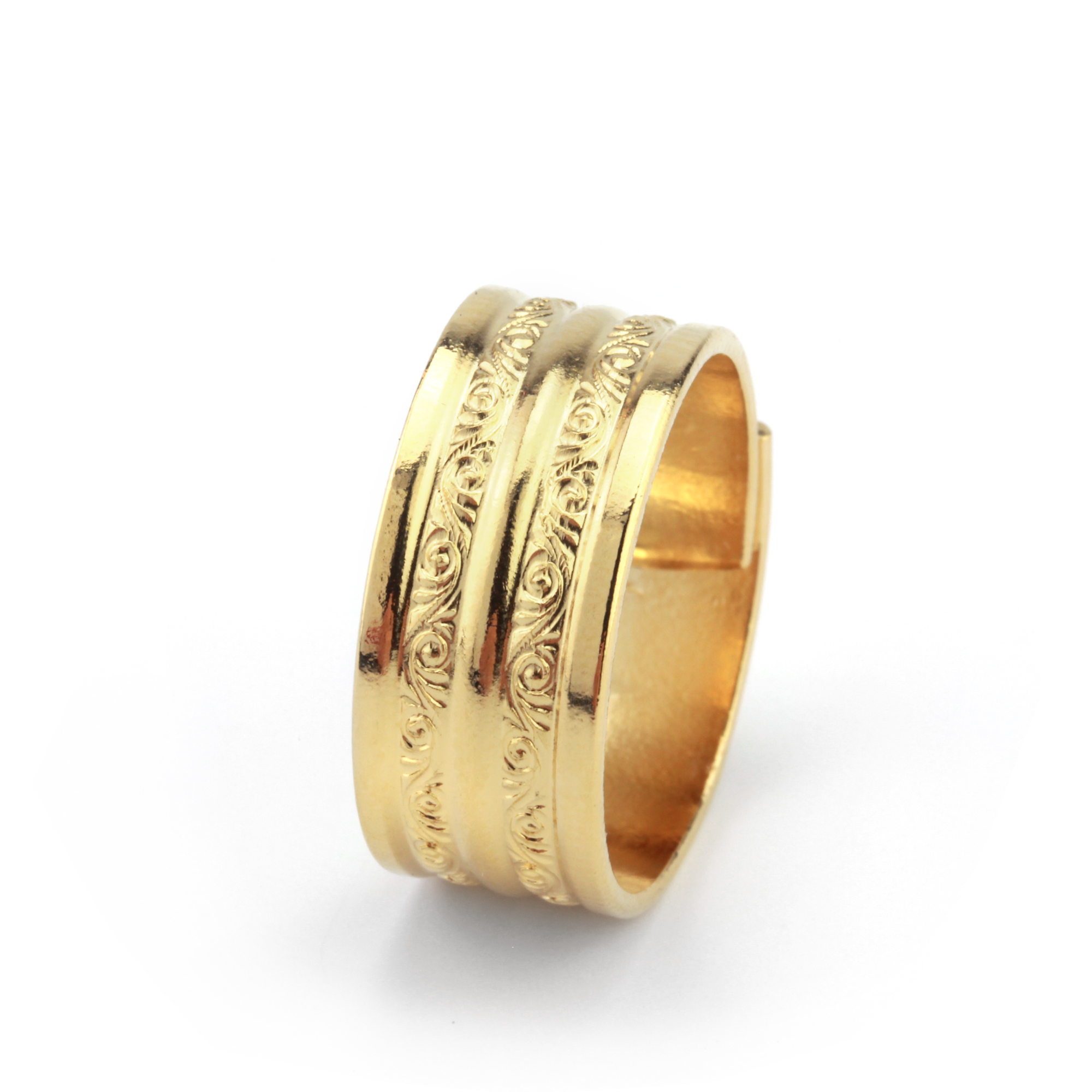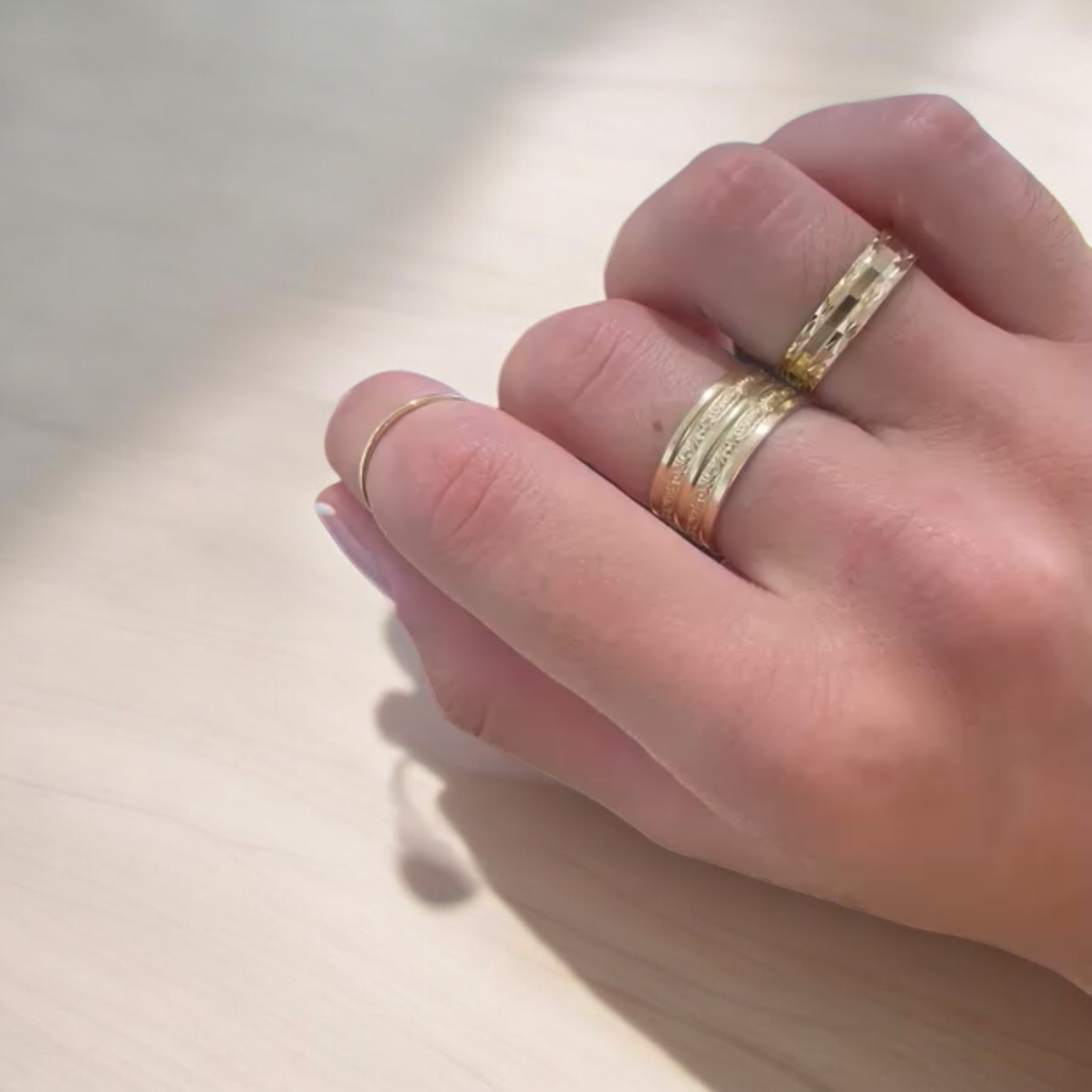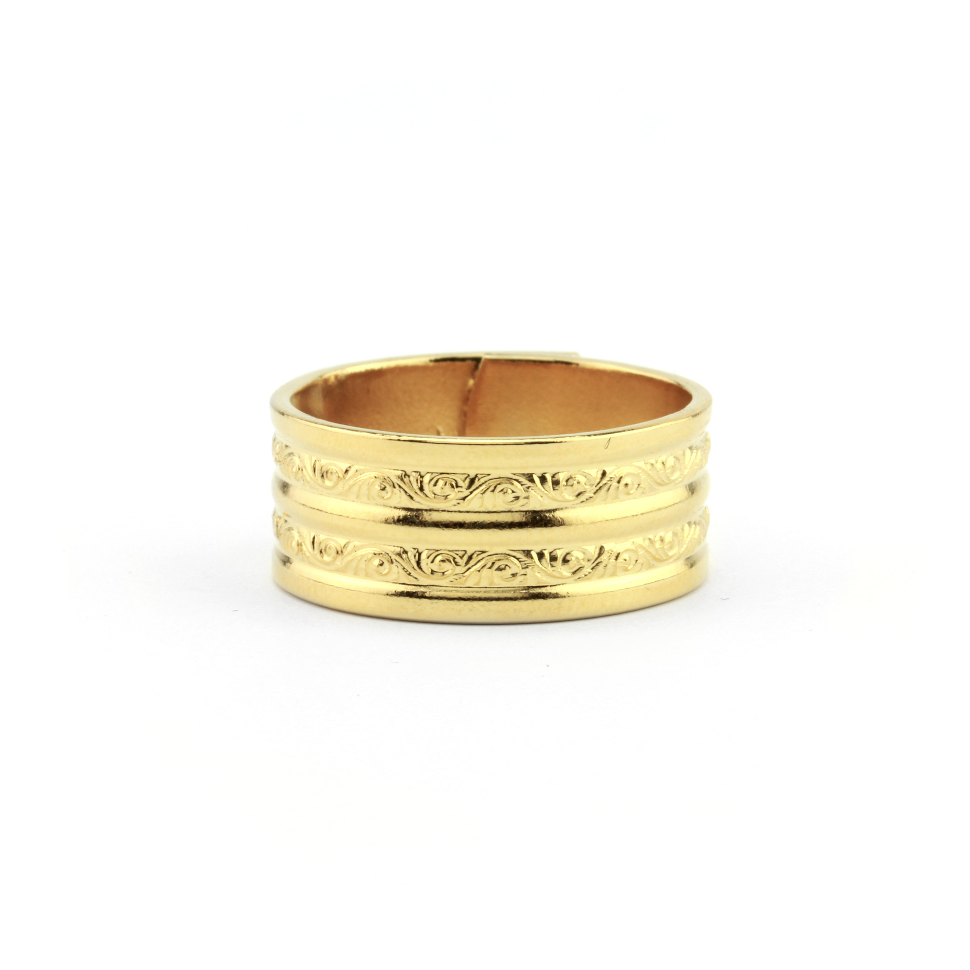 Anneau large avec motifs apposés sur l'ensemble de la bague.