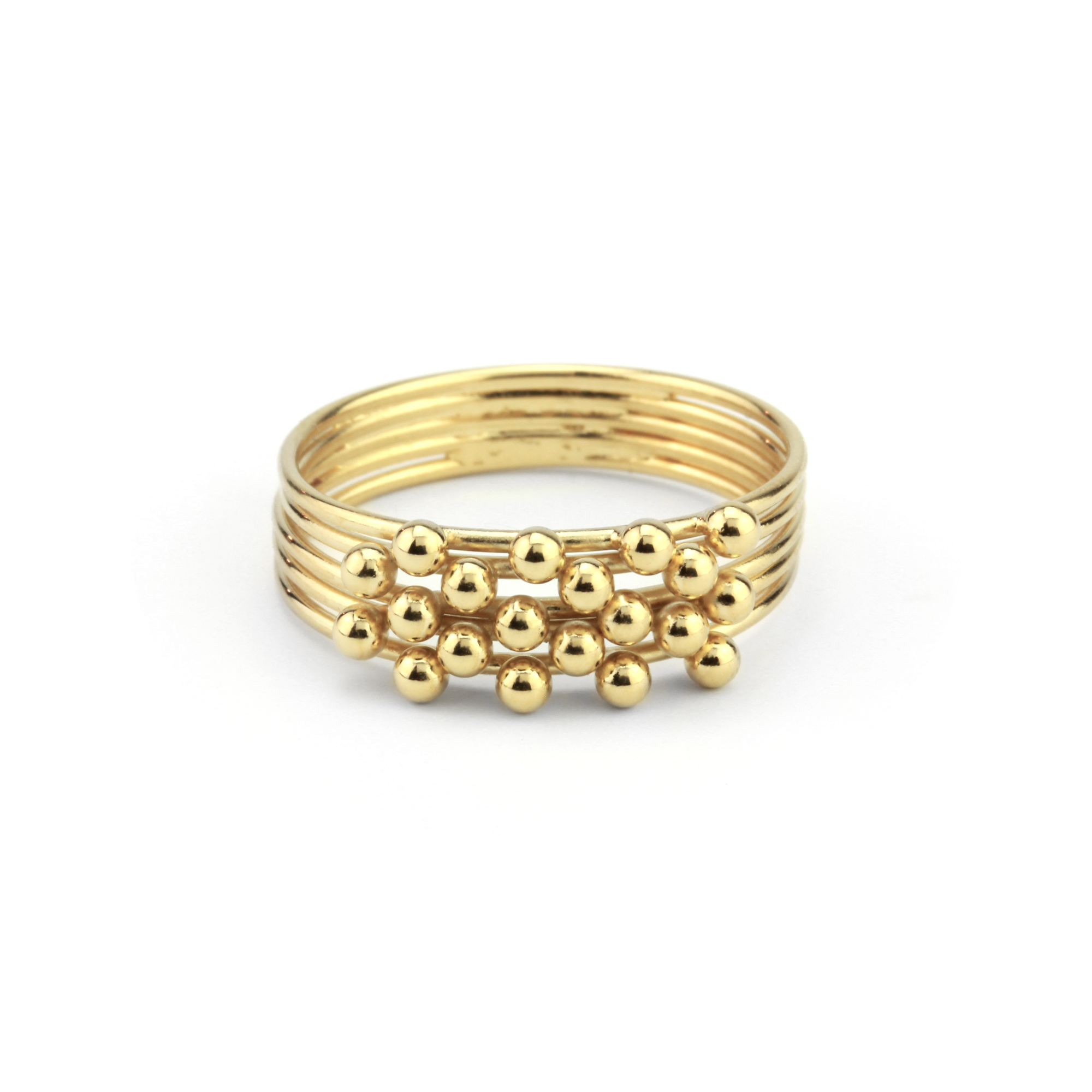 La bague Nui est composée de 5 anneaux sur lesquels sont soudés de nombreuses petites billes.