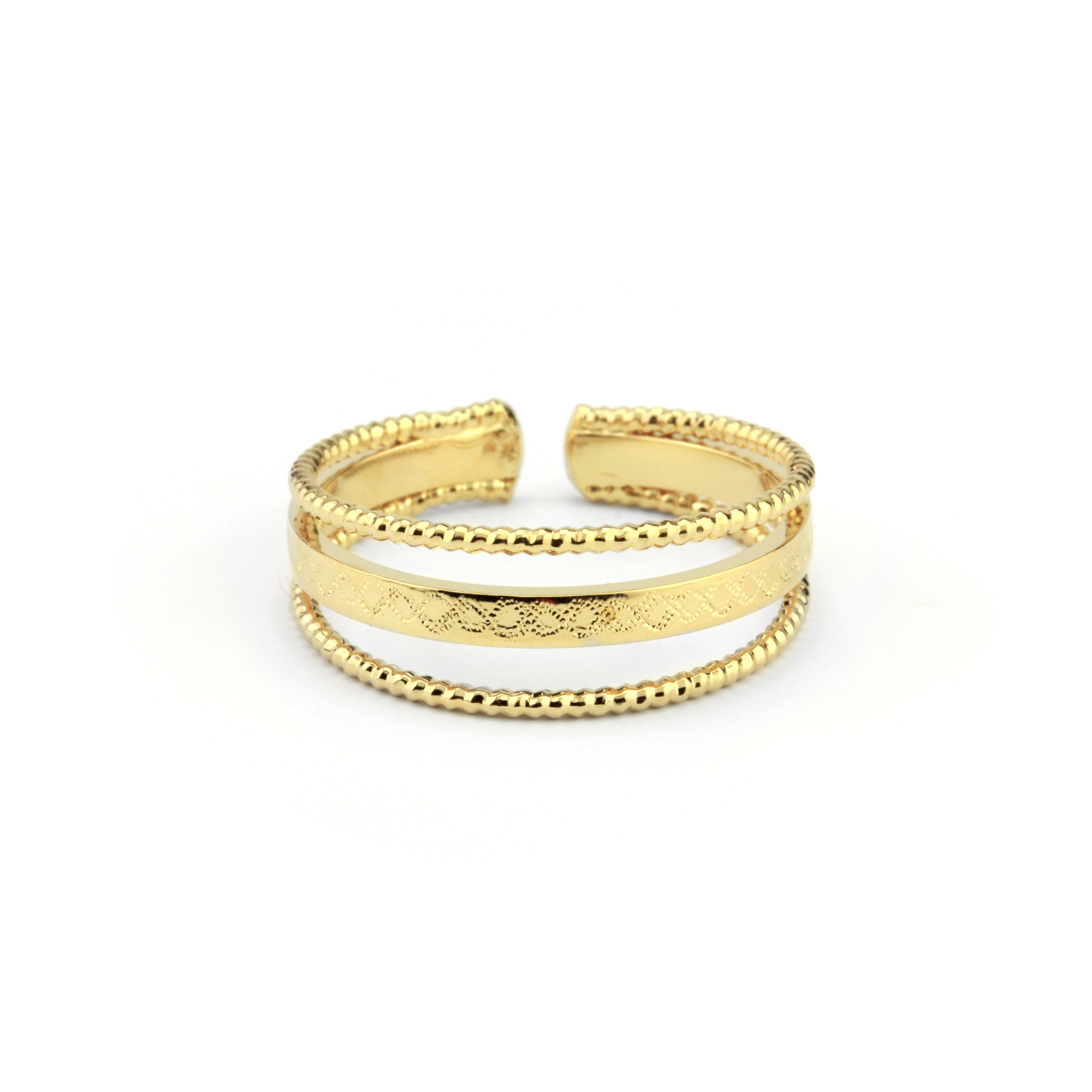 Elle est composée de 3 anneaux ouverts texturés, reliés ensembles.
