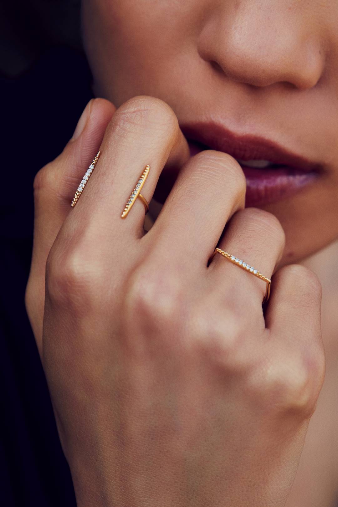 La bague Imai est composée d'un anneau fin et d'une petite barrette.