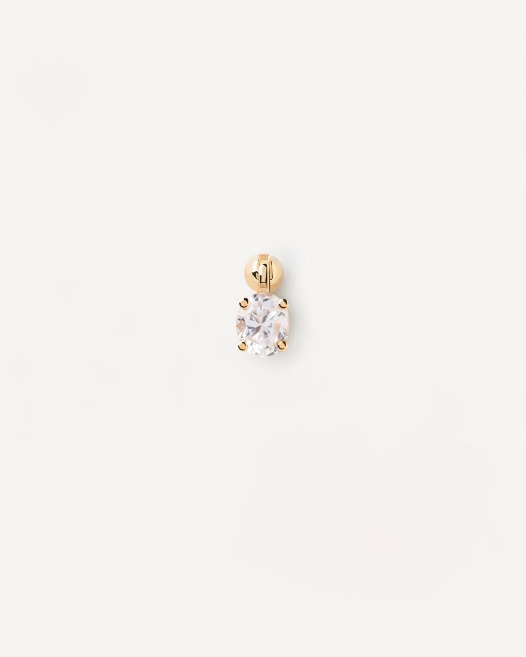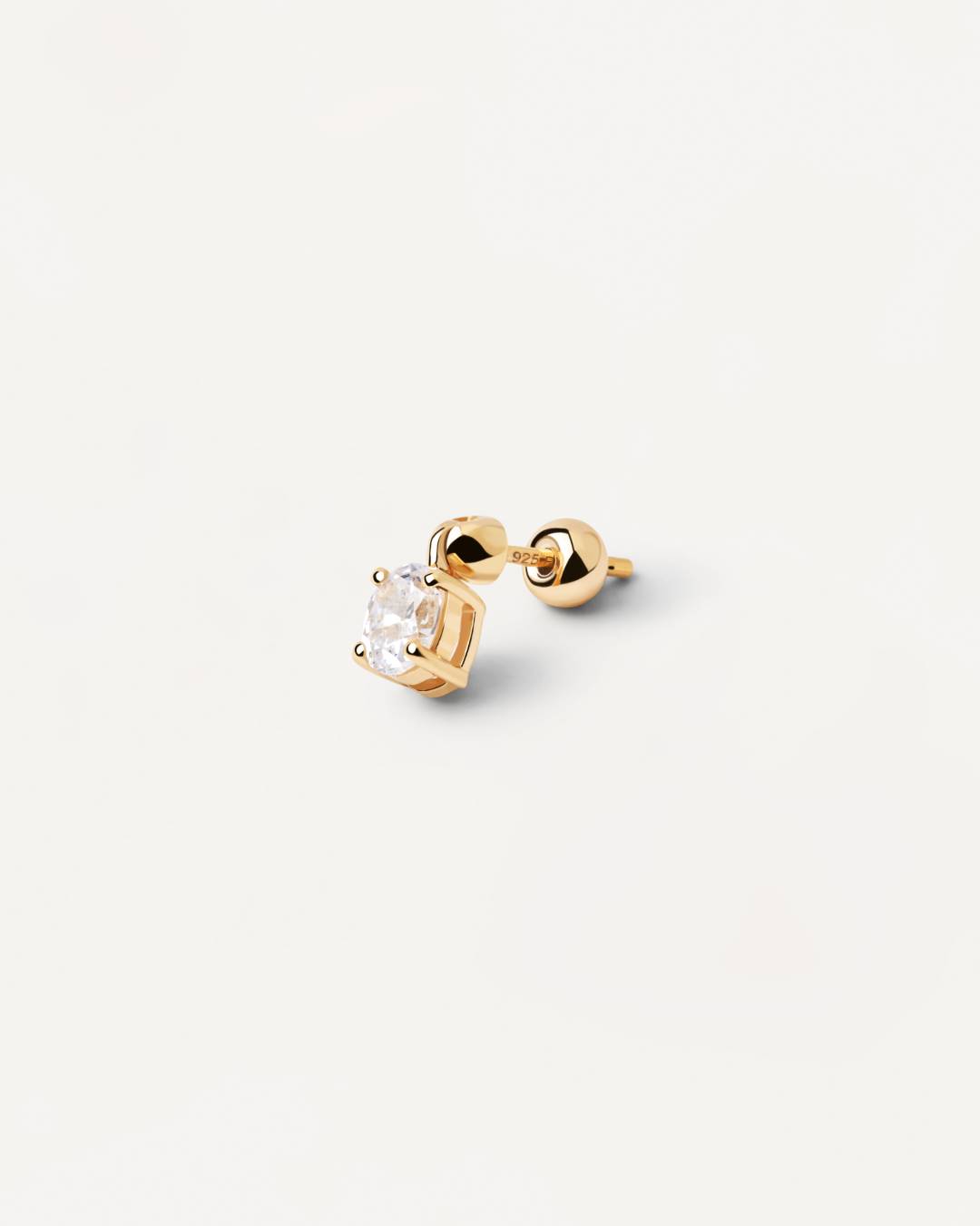 La boucle d'oreille Gia est en argent 925 dorée à l'or fin. Elle est composée d'un cristal serti mobil.
