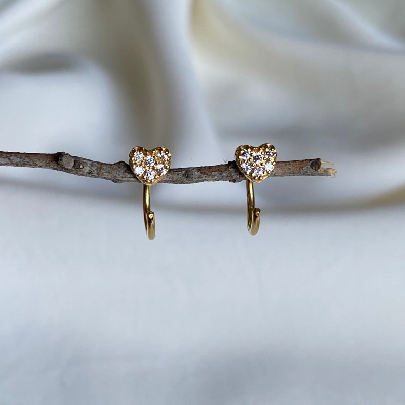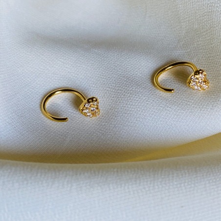 Petite créole en plaqué or 3 microns , pavage de zircons en forme de coeur .