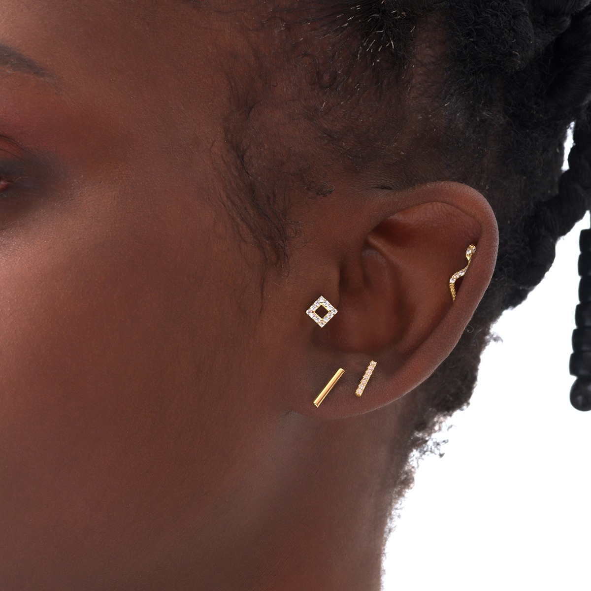La puce d’oreille Gil est dorée à l’or fin 24 carats et est sertie d’oxydes de zirconium blancs.
