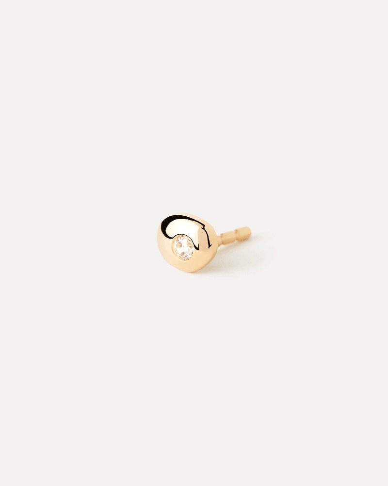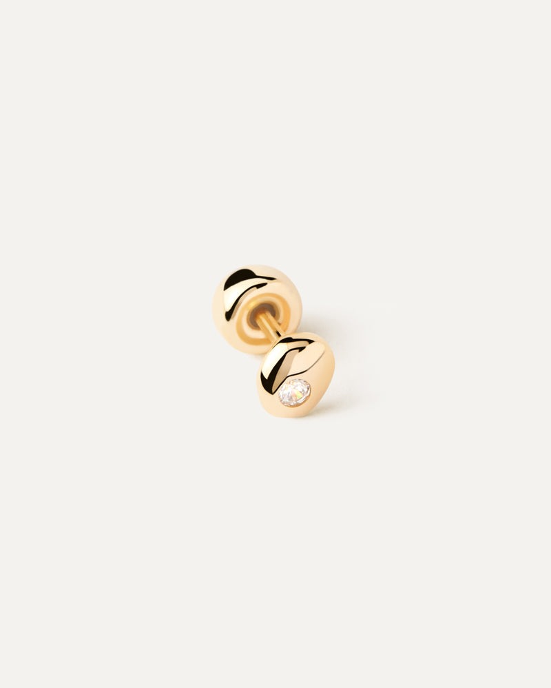 Boucle d'oreille dorée à l'or fin de forme ronde fluide orné d'un zircon affleurant.