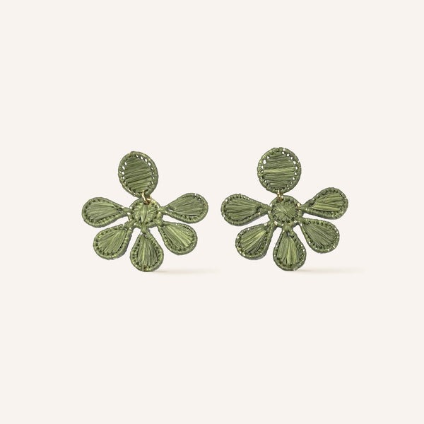 Boucles d'oreilles fleurs en raphia.