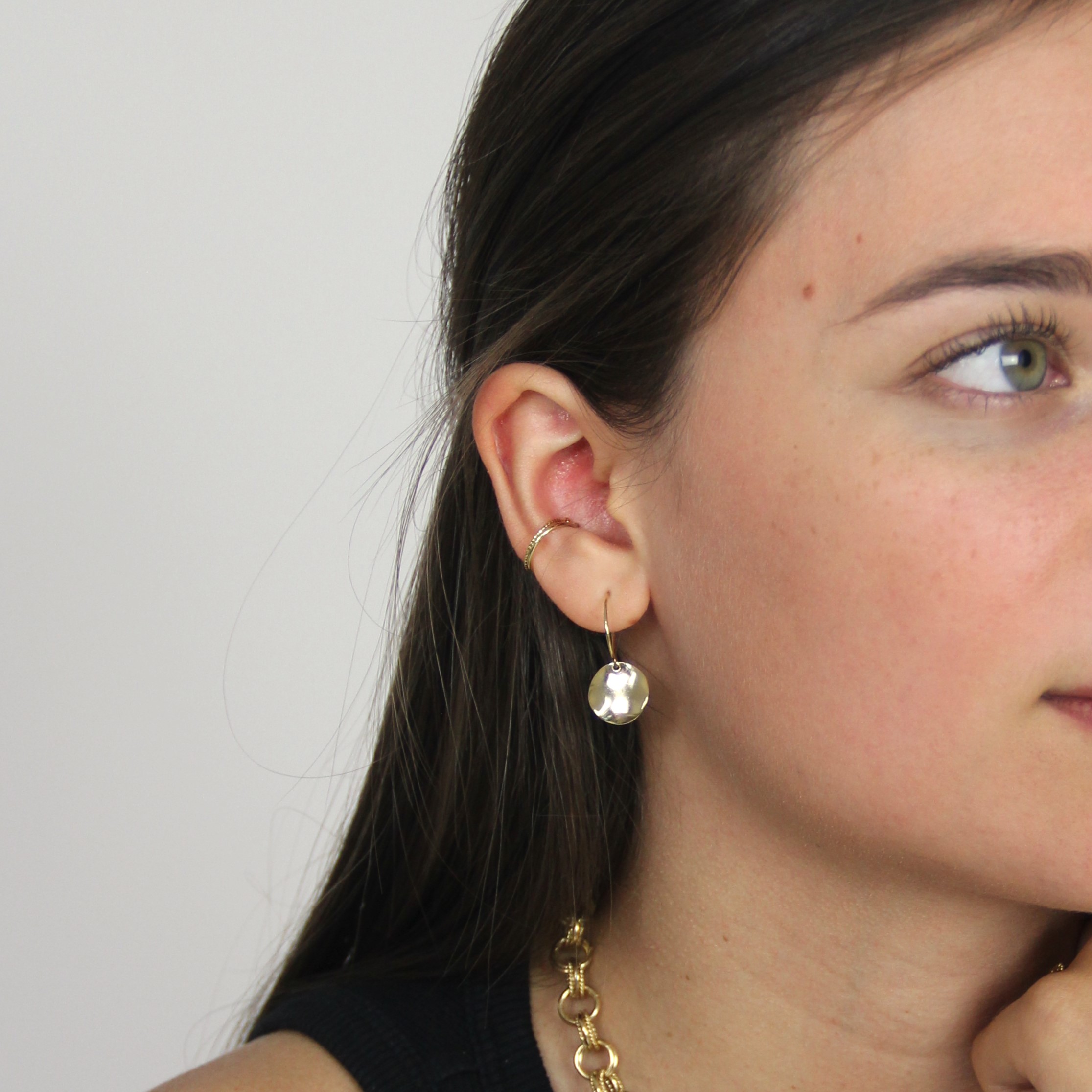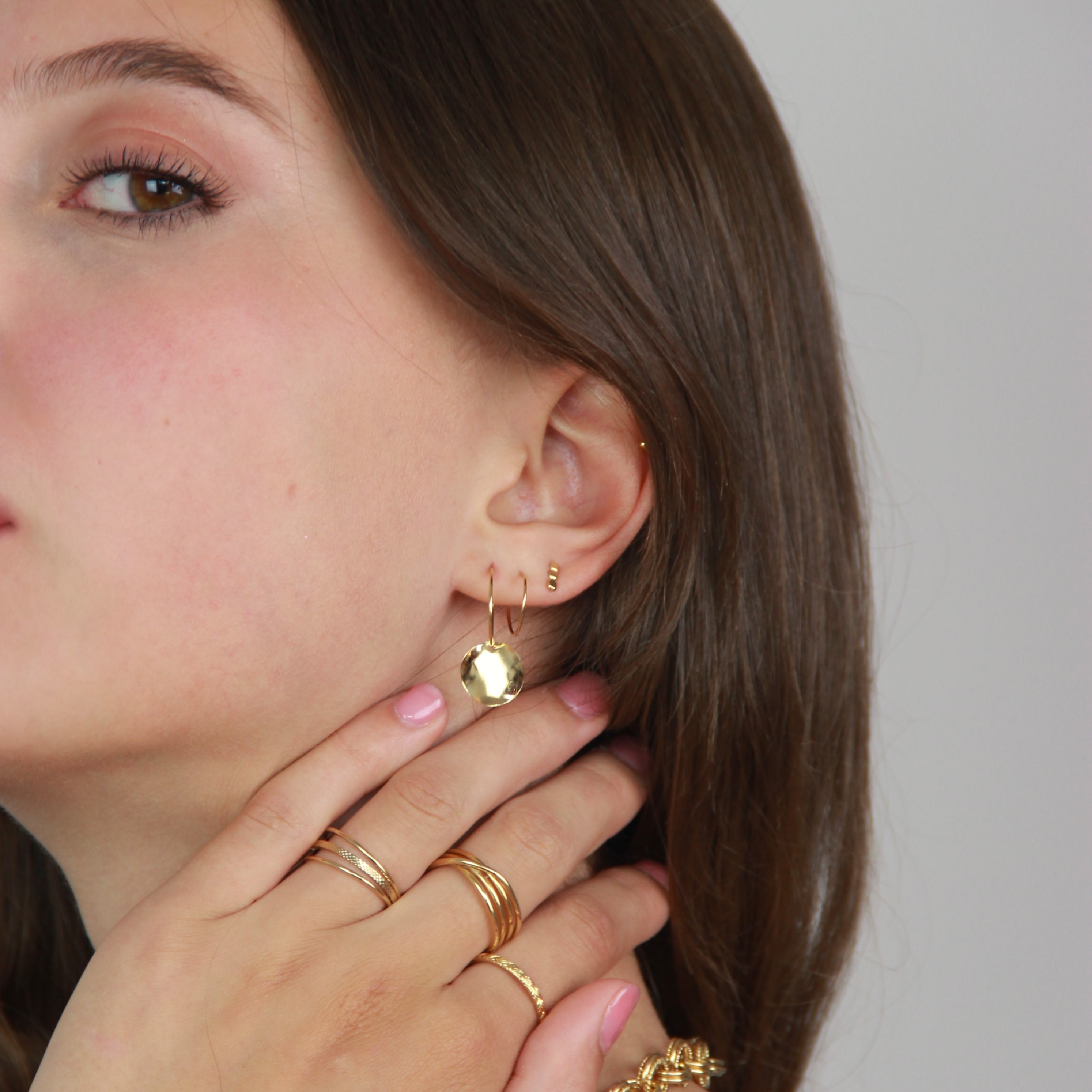 Ce bijou est personnalisableLes boucles d'oreilles sont composées de deux anneaux très fins et de deux petites médailles ondulées.
