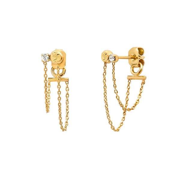 Paire de boucles d'oreilles chaînes dorées à l'or fin, avec strass Swarovski