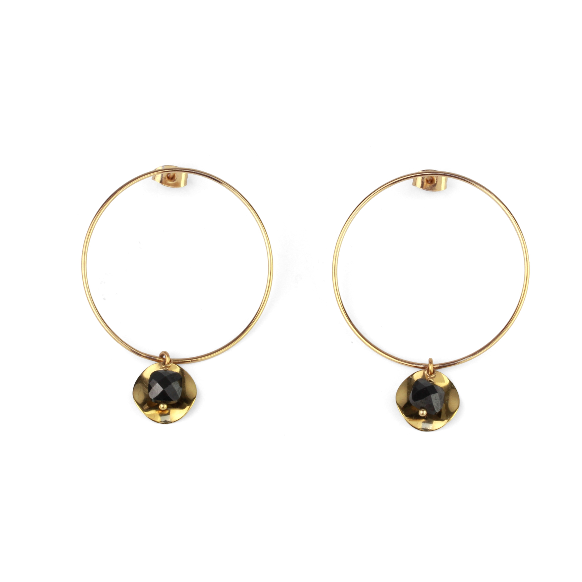 Personnalise tes boucles d'oreilles en y ajoutant un détail coloré! Il suffit d'ajouter à ton panier 2 médailles Belharra ainsi que 2 pendentifs Charlie de la couleur de ton choix. Notre équipe s'occupe de l'assemblage pour que tu puisses rapidement recevoir ta commande personnalisée!