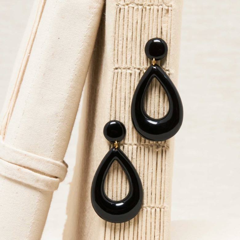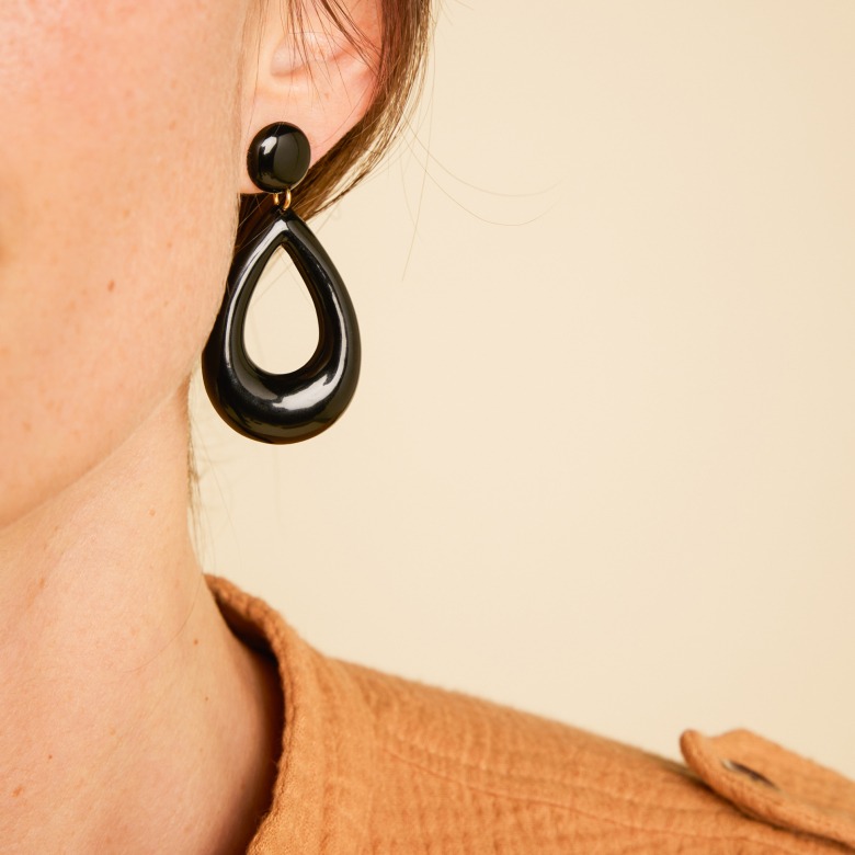 Boucles d'oreilles en forme de goutte en acétate de couleur. Finition brillante.