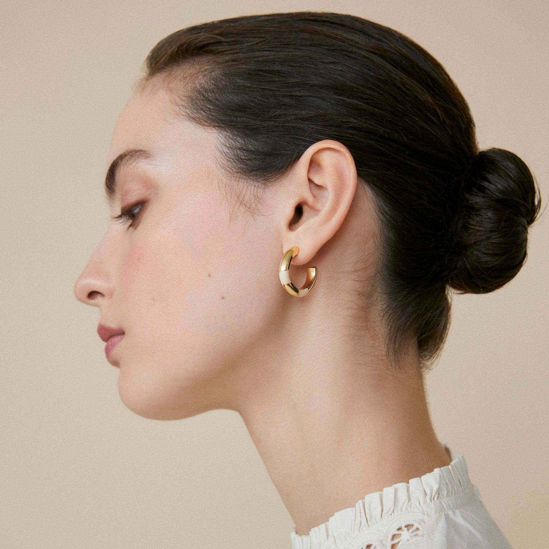 Créoles demi ouvertes doré et écru.