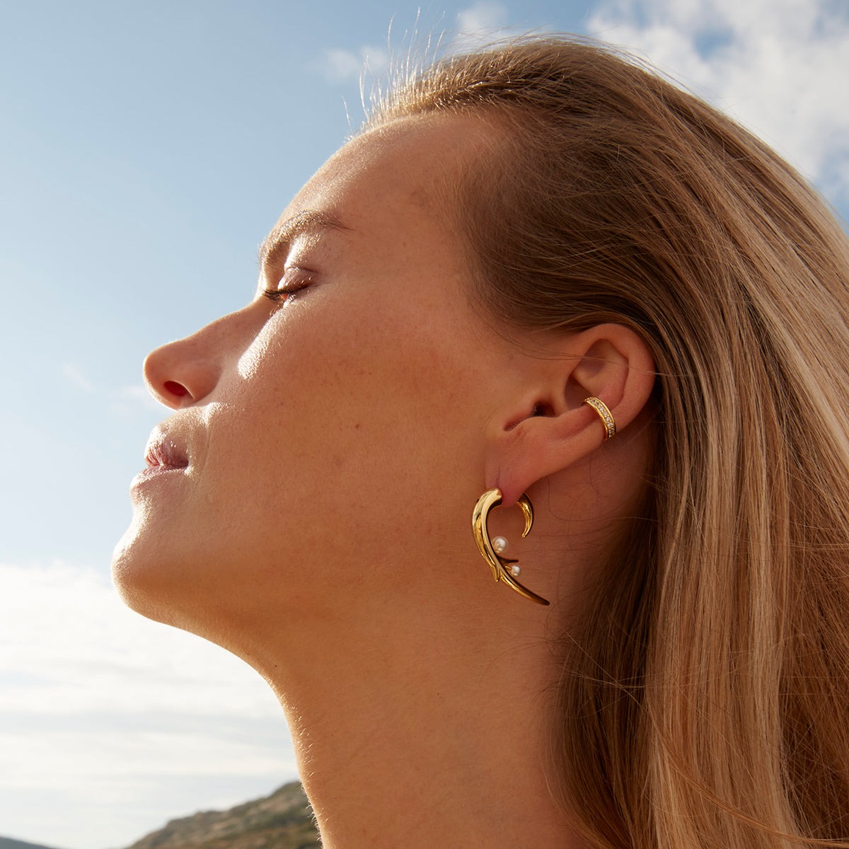 La mono boucle d'oreille Izia est dorée à l'or fin 24 carats.