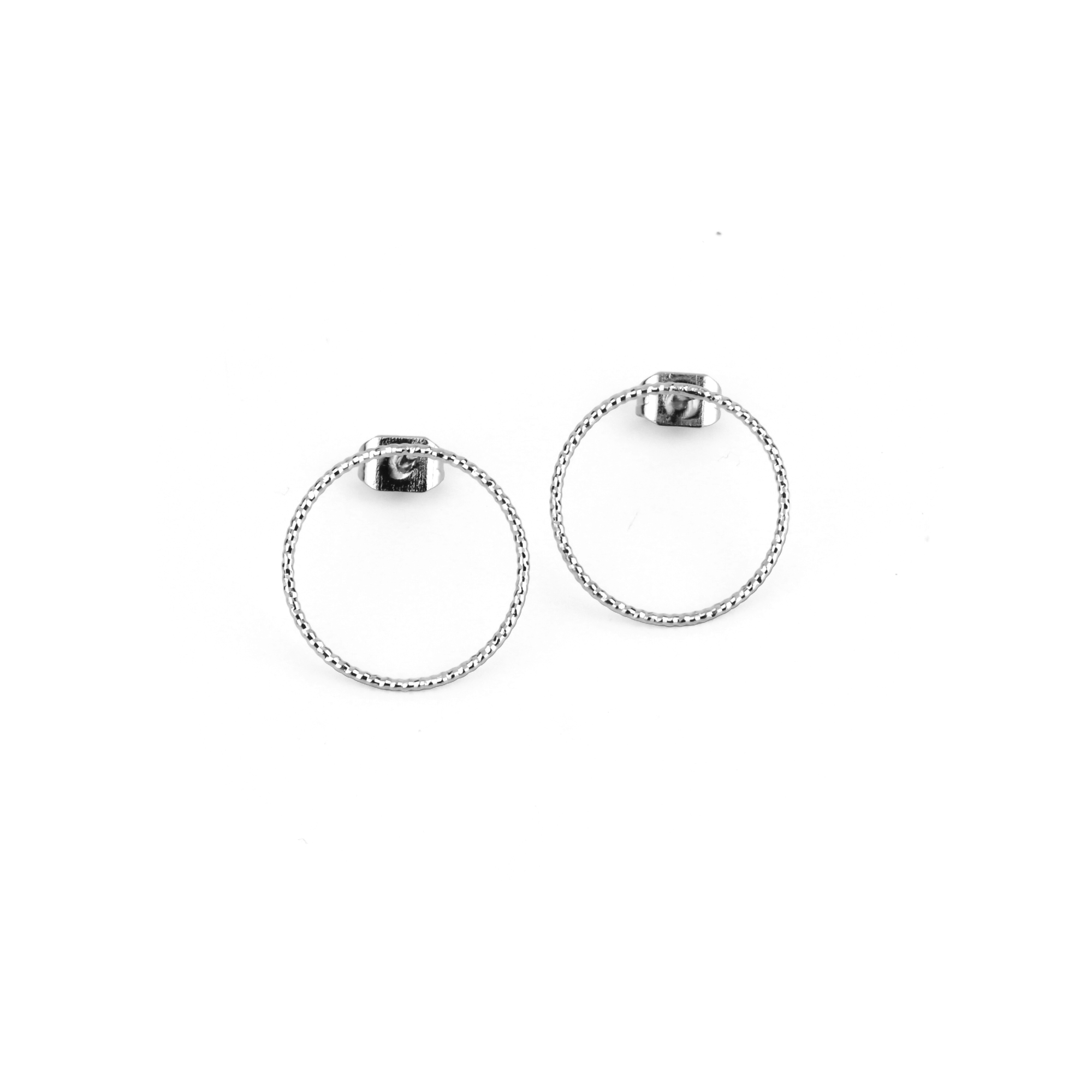 Les boucles d'oreilles Sophie sont des petites puces se composant d'un cercle en fil fin diamanté plaqué argent venant se positionner sur le lobe de l'oreille.