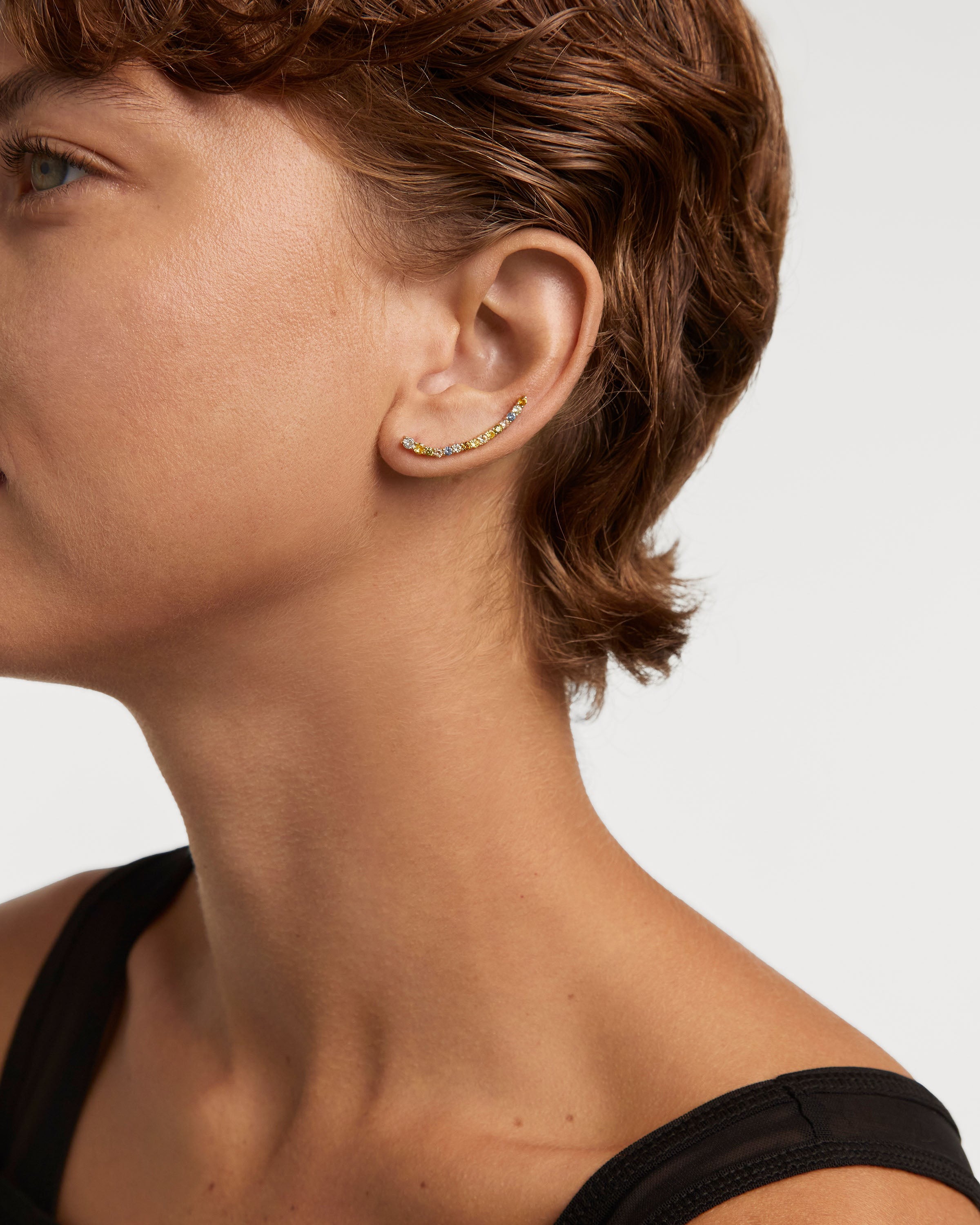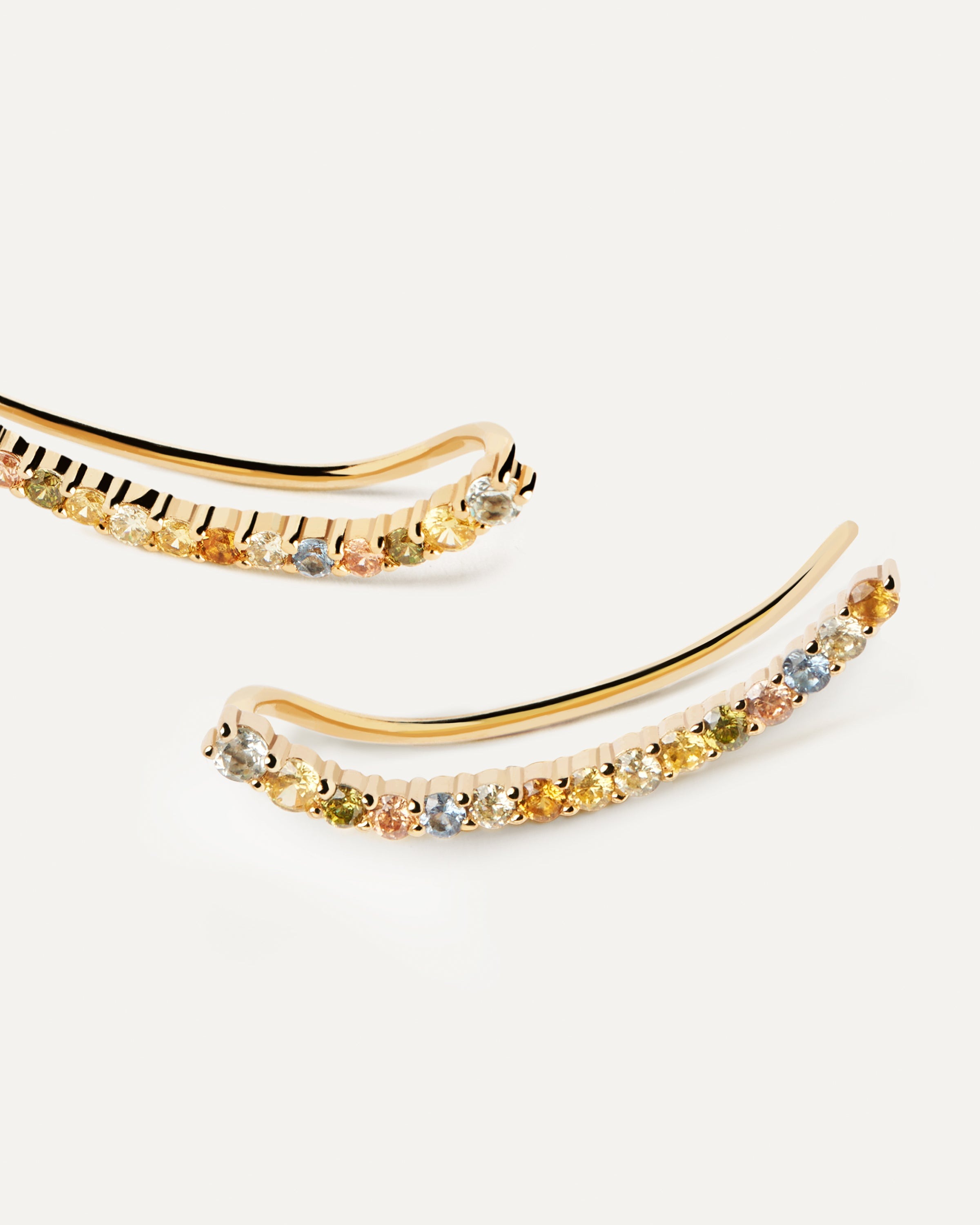 Les climbers Rainbow sont ornés de zirconium de différentes couleurs : menthe, jaune, olive, pêche, bleu, orange et vert citron.