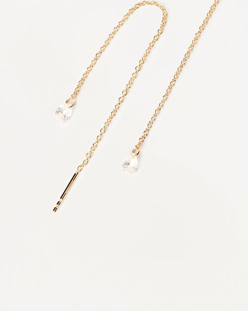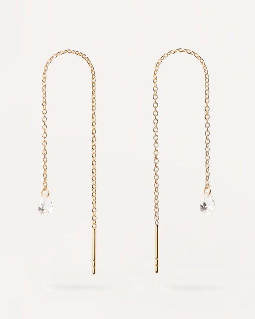 Boucles d'oreilles pendantes en argent massif dorées à l'or fin. Pierre en zircons blancs.