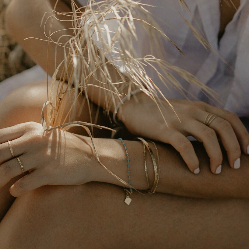 Les bijoux Adepte sont dorés à l’or fin, la dorure est garantie un an. Les bijoux Adepte ne doivent pas être mis en contact avec l’eau ou tout autre produit abrasif qui pourraient altérer la dorure ou le tissage.