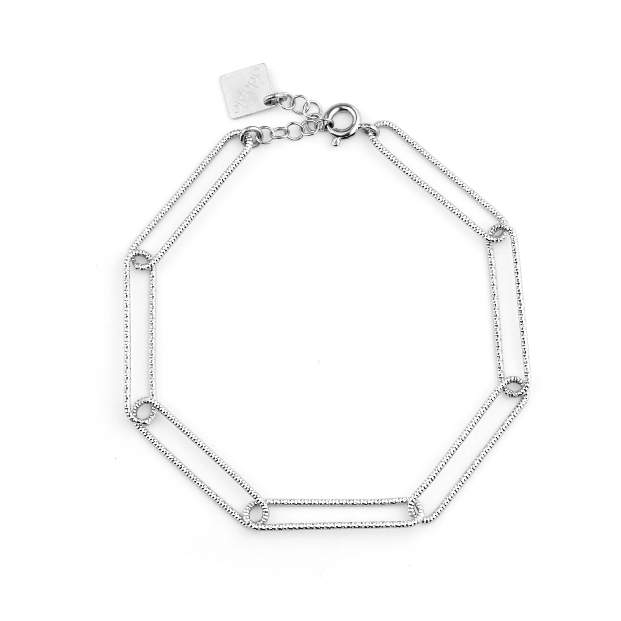 Bracelet composé d'une chaîne aux larges maillons diamantés plaqué argent.