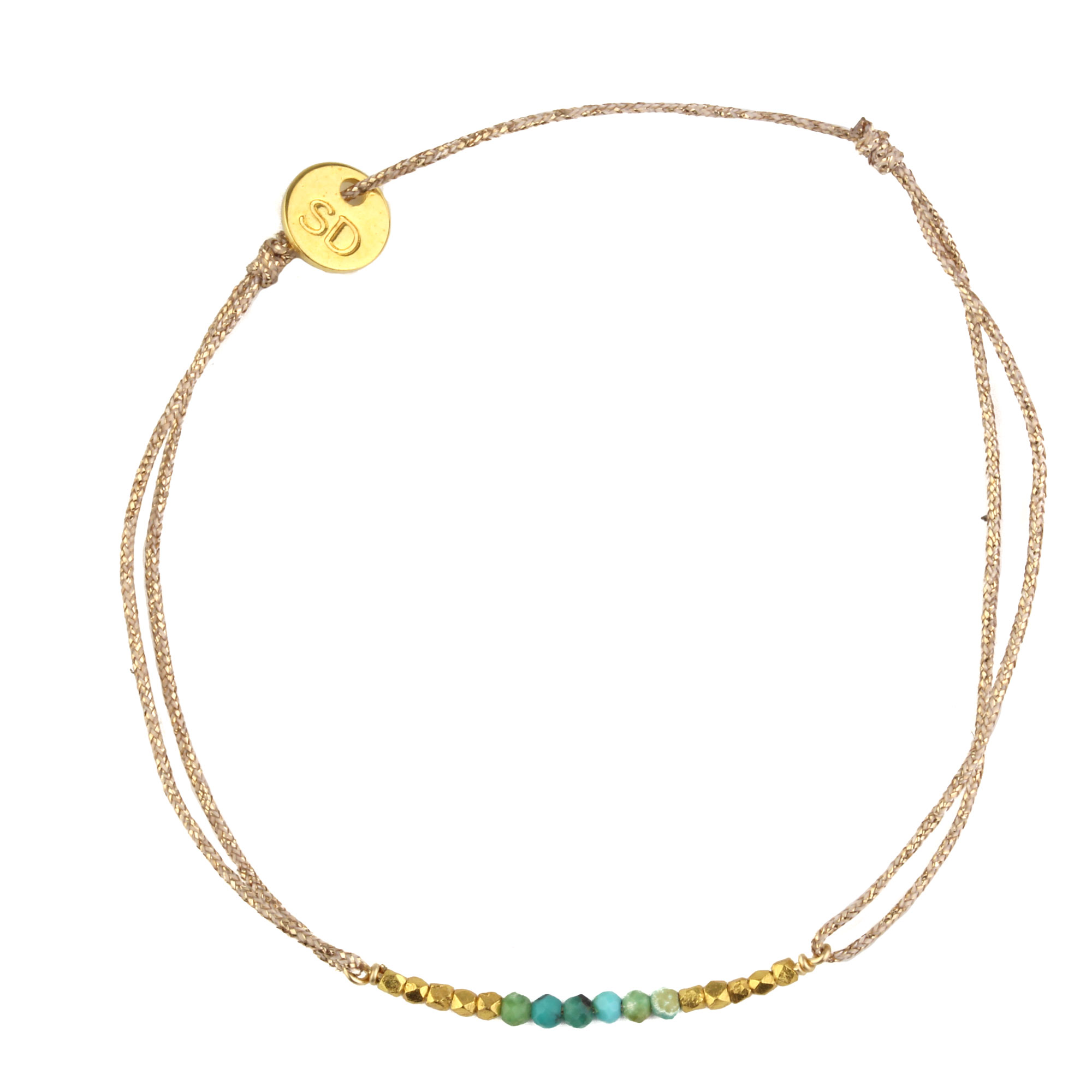 Bracelet cordon en lurex composé de pierres et petites billes plaquées or.