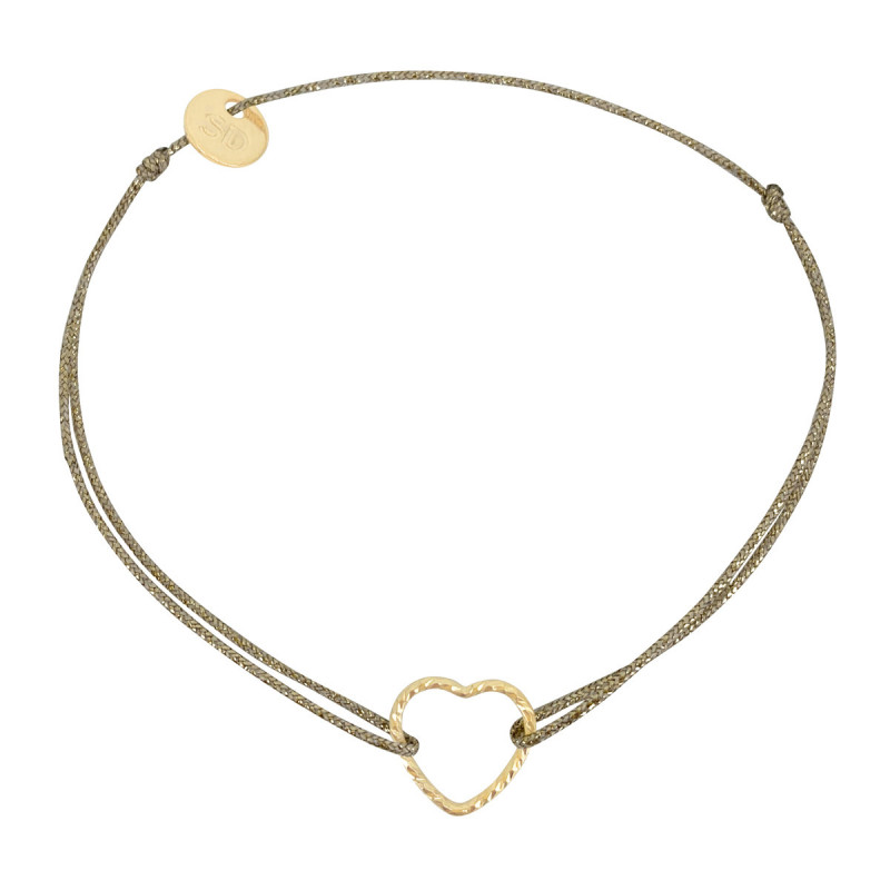 Bracelet cordon en lurex composé d'un coeur ciselé plaqué or.