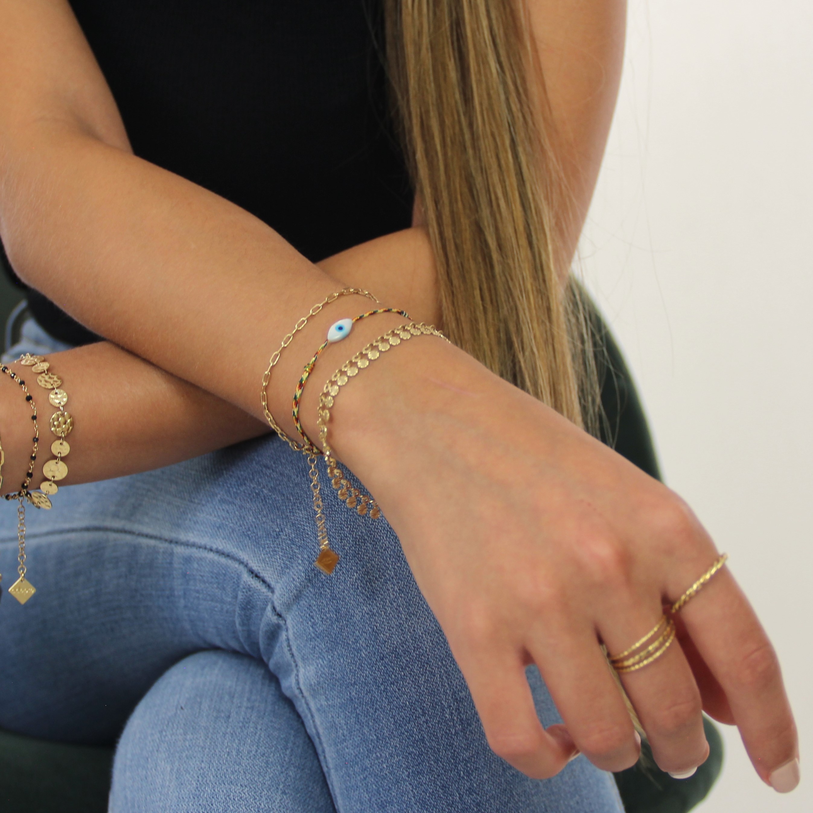 Les bijoux Adepte sont dorés à l’or fin, la dorure est garantie un an. Les bijoux Adepte ne doivent pas être mis en contact avec l’eau ou tout autre produit abrasif qui pourraient altérer la dorure ou le tissage.